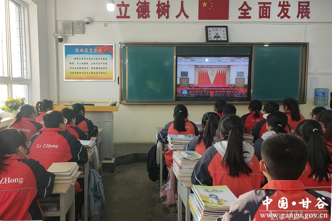 12月20日下午四时,甘谷二中两百多名教师在弘德楼党建办公室、年级组会议室,六十个班级三千多名学生在班级教室利用多媒体集体观看了十九届六中全会精神学习视频课程。学习了党的十九届六中全会精神,全校师生备受鼓舞、倍感振奋。颉欢老师激动地说:“我深刻感受到中国共产党近百年历程的意义非凡,也让我更加坚定了要知党恩、听党话、跟党走的信心。进一步做好本职工作,在学习生活中认真践行全会精神,立德树人、全面发展,为国培养好每一位学生。”2023届高二级一班学生郭鹏云深情地说:“作为中学生要不断提高自己的学习能力水平,担当自己应有的责任和使命,才能在中华民族的伟大复兴中做出贡献。”