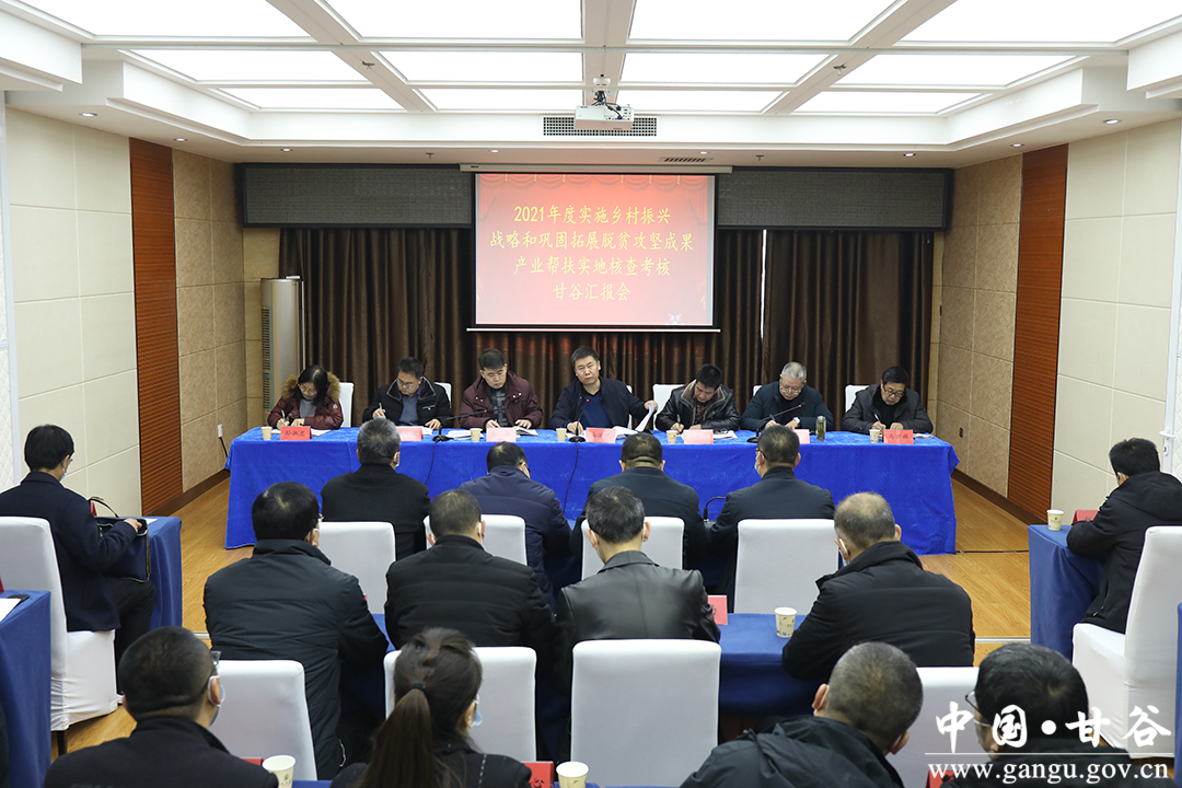 汇报会上,考核组组长安国民介绍了考核日程安排和考核方式,副县长金辉汇报了甘谷县2021年实施乡村振兴战略和巩固拓展脱贫攻坚成果产业帮扶工作情况,考核组与产业专业组成员单位负责人进行了座谈并查阅了相关资料。
