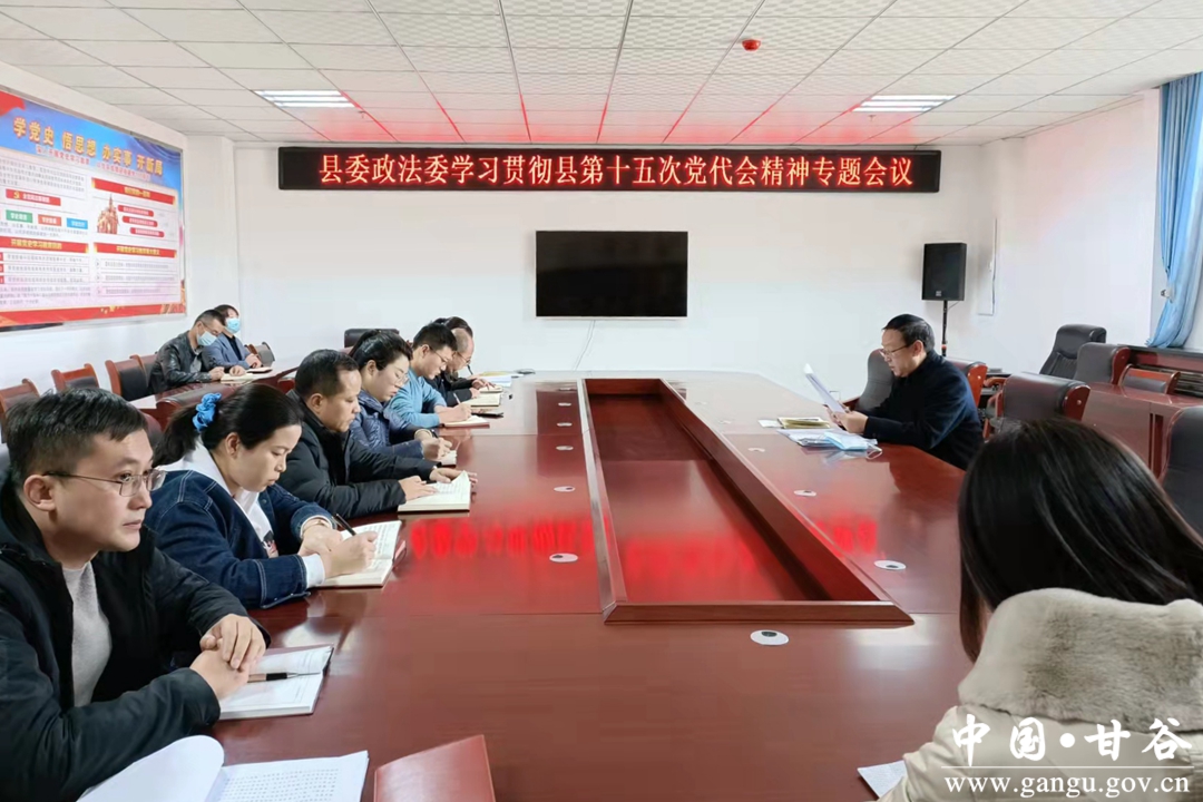 会议要求,县委政法委全体党员干部要结合当前工作迅速掀起学习县第十五次党代会精神的热潮。一要提高政治站位,凝聚思想共识,深刻把握县党代会的重大意义。中国共产党甘谷县第十五次代表大会,是在“两个一百年”奋斗目标交汇的重大历史时期,在全县上下奋进“十四五”、开启新征程的关键节点,召开的一次十分重要的会议。全体干部必须进一步提高政治站位,统一思想认识,全面理解,深刻把握党代会重大意义,坚定信心、提振士气、奋发有为、攻坚克难,为全县社会经济发展贡献力量。二要突出学思践悟,加强学习宣传,有力推动县党代会精神入脑入心。要把学习、宣传、贯彻县党代会精神作为当前一项重要政治任务,采取集中学习与个人自学相结合、专题学习与主题研讨相结合等方式,全面系统深入地抓好学习。三要强化责任意识,勇于担当实干,全面抓好县党代会精神的贯彻落实。要把贯彻落实党代会精神作为重大政治任务,始终坚持党对政法工作的绝对领导,自觉把思想和行动统一到县委决策部署上来。要注重担当实干,自觉把政法工作放在全县发展大局中,勇于改革创新,埋头苦干实干。要突出自身建设,进一步提升干事创业的本领和能力,有力推动全县政法工作实现跨越式发展。
