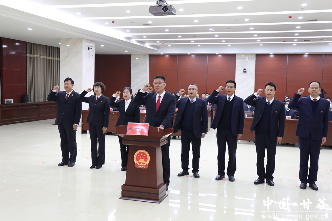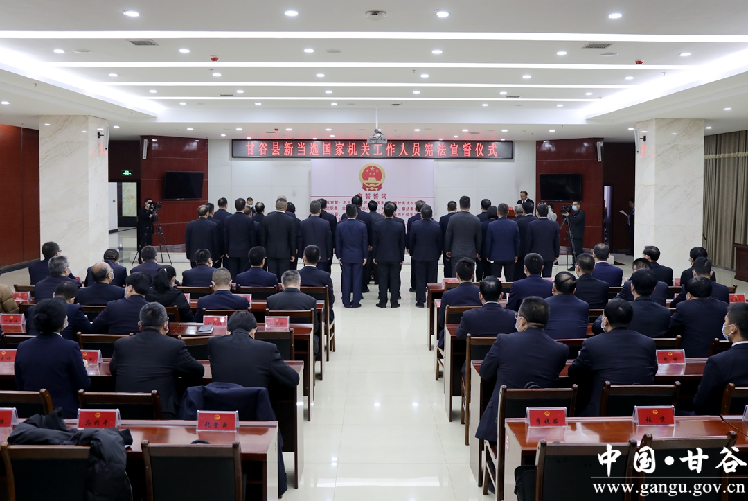 根据《全国人民代表大会常务委员会关于实行宪法宣誓制度的决定》和《甘肃省组织实施宪法宣誓制度办法》的规定,11月30日下午,甘谷县第十八届人民代表大会第一次会议结束后,新当选的县人大常委会组成人员,县人民政府领导班子,县监察委员会主任,县法院院长、县人民检察院检察长向宪法宣誓。
