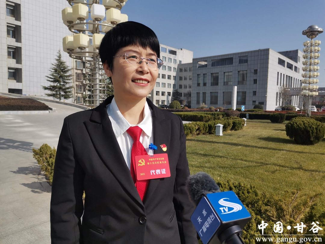 党代表杨晶说,中国共产党甘谷县第十五次代表大会,是在全县人民深入学习党的十九届六中全会精神,全县上下取得疫情防控阶段性胜利的良好氛围中召开的一次盛会,意义十分重大。会上吴书记所作的报告实事求是的总结了过去5年的工作成就和经验,作为一名最基层的代表,我亲历和见证了我县取得的令人瞩目的发展成就和振奋人心的丰硕成果,我内是无比自豪的。通过报告,我仿佛看到了东关社区的美好前景,这次会议进一步坚定了我深化思想认识,提高精神领悟,坚决贯彻落实的信心和决心,我将第一时间将会议精神传达给在基层的人民群众,我们东关社区也将一如既往的在提高服务居民品质,提升社区治理能力上,下真功夫下苦功,答好党建引领,服务群众这份答卷。