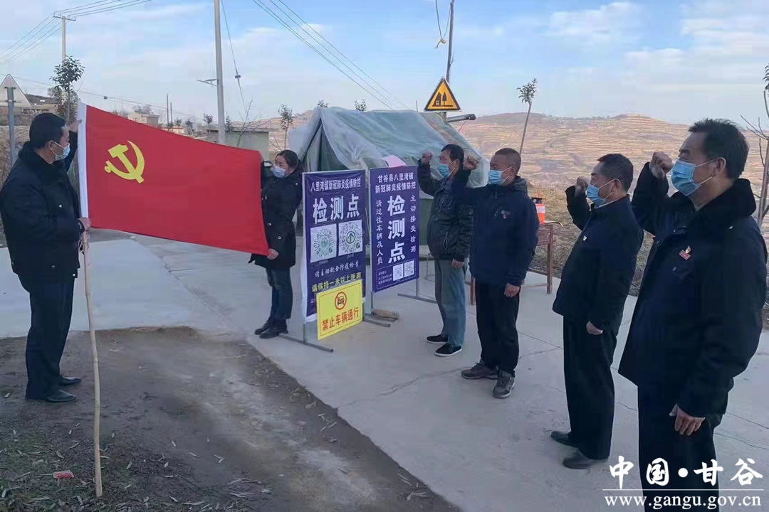 冲锋在前,发挥先锋模范作用。在镇党委的统一领导下,全镇党员干部战斗在一线,担当在一线,共设立新冠肺炎疫情防控检测点党员示范岗43处,党员200余人,志愿者280余人。各检查点实行24小时轮流值班制度,严格落实“五个一”疫情防控措施,全镇党员在疫情防控一线佩戴党员徽章,亮身份、当先锋、树形象、作表率,发扬不畏艰险、无私奉献的精神,带头扎实开展人员排查、出入人员和车辆核查登记、环境消杀等重点任务,在疫情防控中践行初心使命、体现责任担当。
