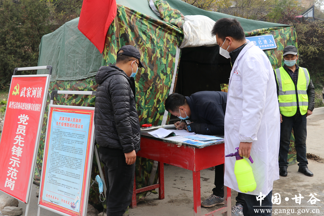 11月3日,记者在武家河镇武家河村检测点看到,关口的工作人员正在对过往车辆包括本地车辆的司乘人员进行登记、查码、体温检测、车辆消毒等工作,同时对重点区域来甘的人员进行详细登记并分类分级进行管控检测,对不符合通行条件的人车全部劝返,做到不漏一车不漏一人全覆盖。