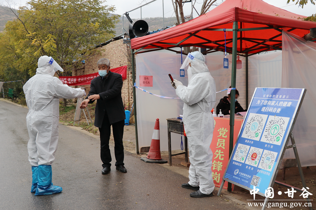 大庄镇付家河村防疫值守人员付军平说,按照最新的疫情防控要求,我村只保留了这一条出入通道,其余大小路均设置路障,安排人员值守,劝返外出人员,并挨家挨户排查,对排摸出的来甘返甘人员严格落实分类管控措施,并确定专人每天定时测量体温,查验健康码。