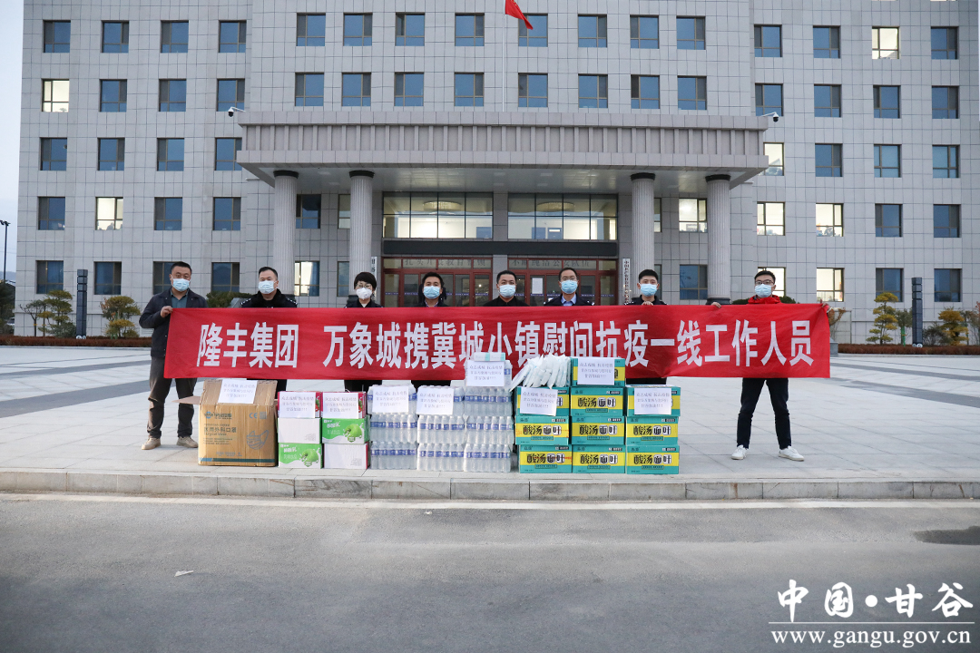 近日,甘谷隆丰集团、万象城携手冀城小镇,先后为县融媒体中心、市场监督管理局、自然资源局、综合执法局、大像山镇、团县委、住建局、公安局、应急管理局等单位共送去了护服150套、口罩40000个、医用手套400双、方便面100箱、矿泉水100扎、优酸乳100箱,价值5万余元。他们以实际行动,为疫情防控贡献企业力量,助力疫情防控保卫战。