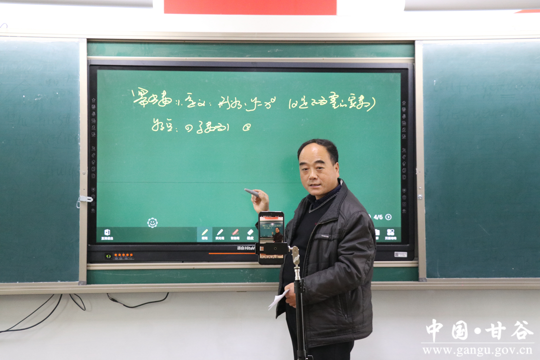 甘谷县第一中学副校长谢永强介绍到,在我们学校各年级备课组,根据授课学科教学特点结合学生实际,对授课方法、授课内容、学生激励监督等方面的细节进行了充分研讨,利用钉钉、微信、学科网等平台开展网上教学。全校260多名教师、4500多名学生现已全部转入线上教学,工作开展平稳有序,教学效果较好。