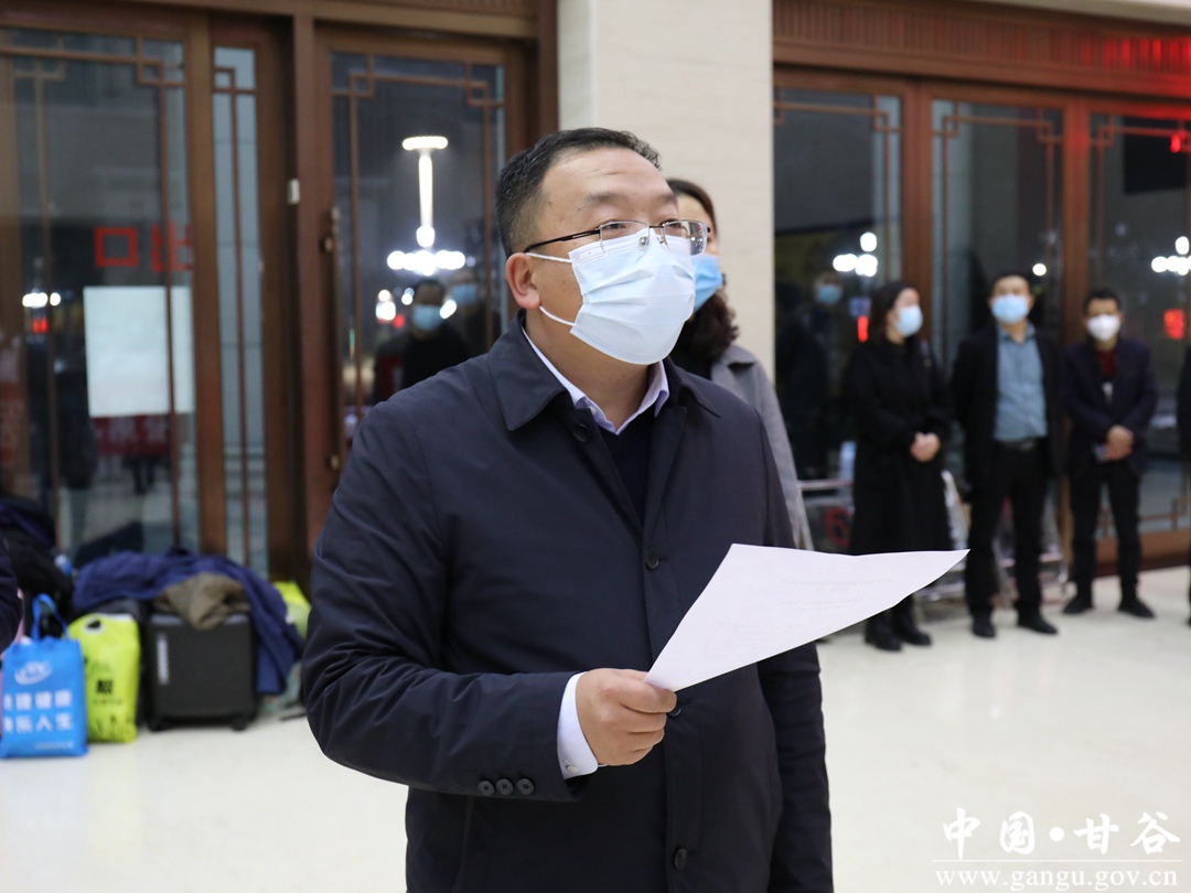 林如海代表县委、县政府和全县父老乡亲,向44名“白衣战士”致以崇高的敬意和衷心的感谢。他说,你们在抗击疫情的紧要关头,舍小家顾大家,毅然奔赴抗疫最前线,充分体现了医务工作者的政治担当和医者仁心,也代表了64万甘谷人民对麦积人民的关心牵挂和深情厚谊。祝愿大家在麦积身体健康、工作顺利,县委、县政府和全县人民期盼你们早日凯旋、平安回家。
