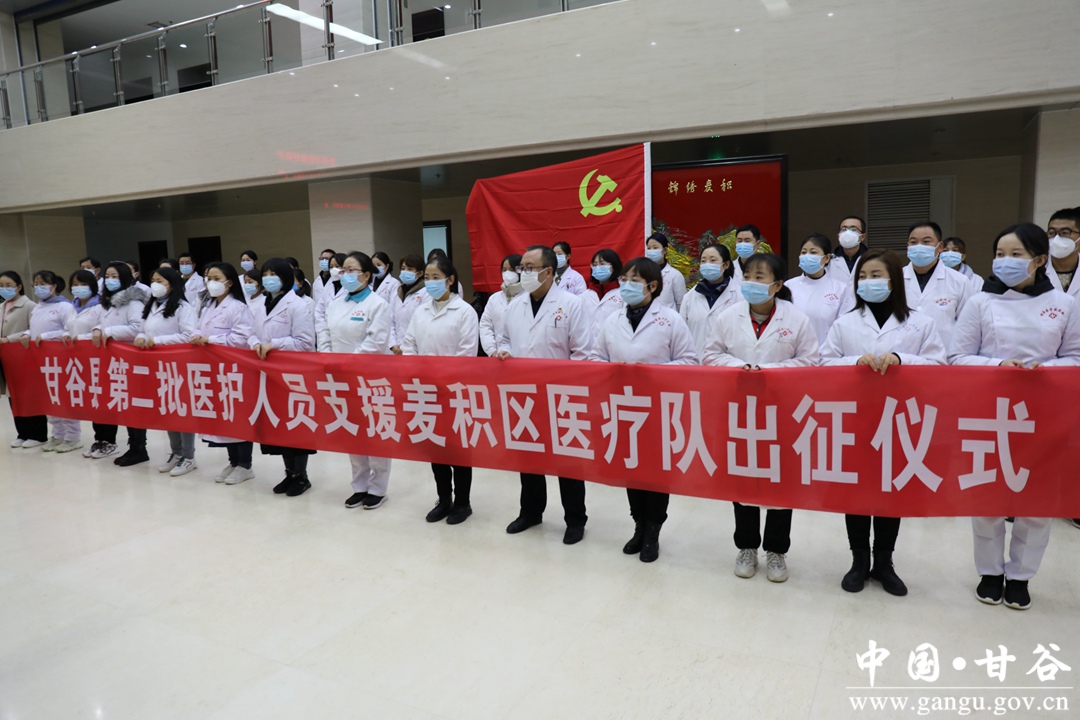10月30日晚,甘谷县从县医院、疾控中心、中医院、各乡镇卫生院抽调的第二批44名医务人员组建医疗队,支援麦积区开展疫情防控工作。县委副书记林如海,县委常委、组织部部长李斌斌,县政府党组成员、县委办主任刘强为医护人员出征送行、鼓劲加油。