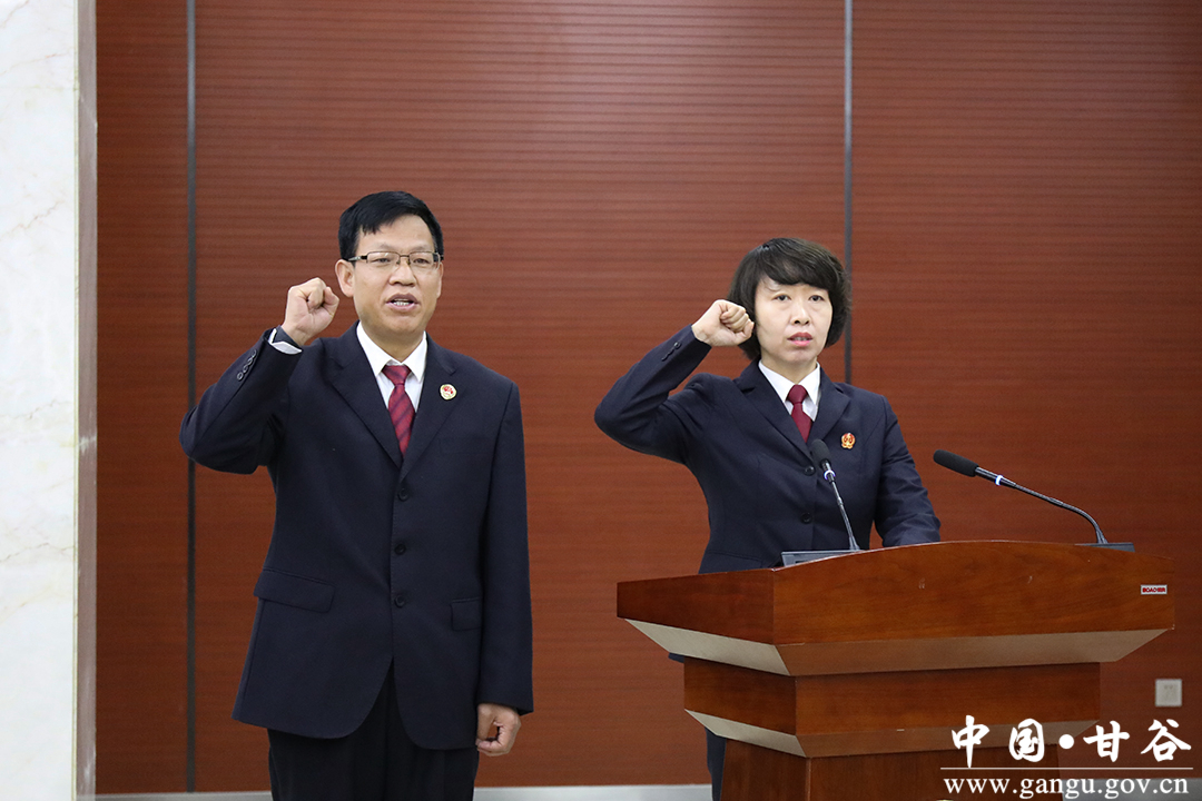县人大常委会主任杨帆为新任命的甘谷县人民法院代理院长李兰、甘谷县人民检察院代理检察长邵新建颁发了任命书,并举行了新任命国家机关工作人员宪法宣誓仪式。