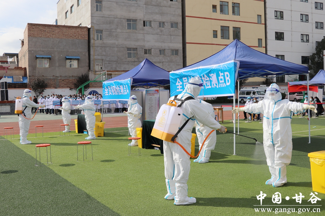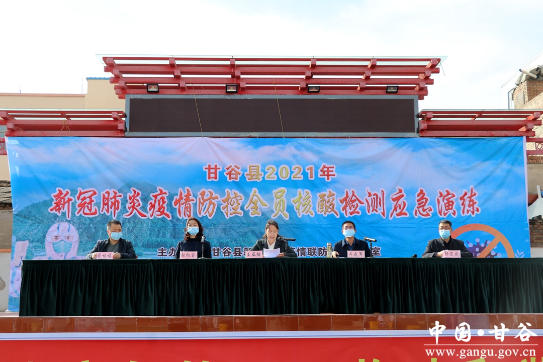 10月17日,甘谷县在康庄中学操场举行2021年新冠肺炎疫情防控全员核酸检测应急演练,县委常委、宣传部部长王亚梅主持应急演练,副县长牛武军出席应急演练,各乡镇卫生院医务人员和有关单位参加演练。
