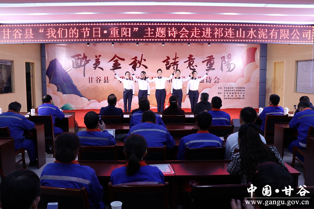 为弘扬优秀传统文化,传承中华文明的优秀基因,构建诗意中国的美好愿景,10月13日,甘谷县在祁连山水泥有限公司举行“我们的节日·重阳”主题诗会。县委常委、宣传部长王亚梅出席并讲话,副县长牛武军主持,县政协副主席马清平出席诗会。