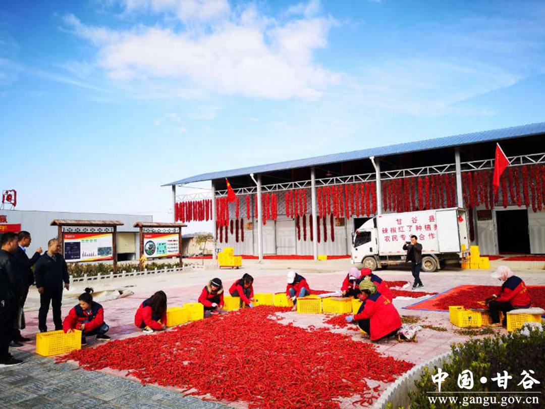 辣椒红了产业合作社作为“华夏邦农”产业联合首领,不仅带动了社会经济快速发展,同时对供电增收也具重要意义。该产业积极承载着13个乡村的脱贫帮扶、解决着近百人的就业问题。是甘谷县金山镇唯一一座集种植、生产、扶贫、电商、科普示范和技术培训于一体的“华夏邦农”联合经济产业基地。