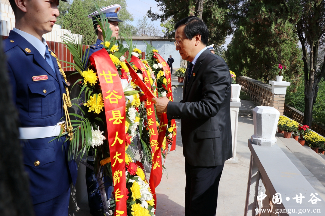 (县人大常委会主任杨帆代表甘谷县人大常委会敬献花篮)