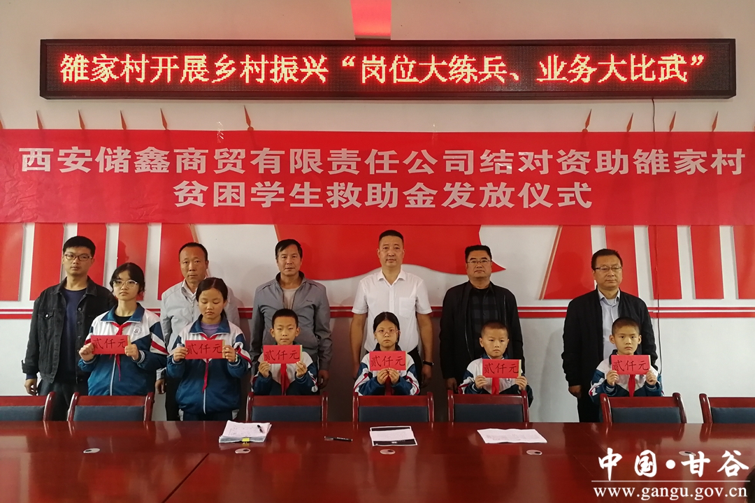活动中,雒家村党支部联系西安储鑫商贸有限责任公司结对资助雒家村贫困学生,由学校推荐家庭困难、品学兼优的六名学生,党支部把关。西安储鑫商贸有限责任公司也为雒家村村民们送上了节日的问候和深深地祝福。
