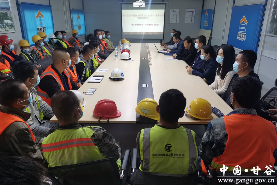 为加大习近平总书记在庆祝中国共产党成立100周年大会上的重要讲话精神宣传,切实把学习贯彻同推进工作结合起来,9月24日,县委宣讲团走进甘谷县碧桂园项目工地开展专题宣讲活动。