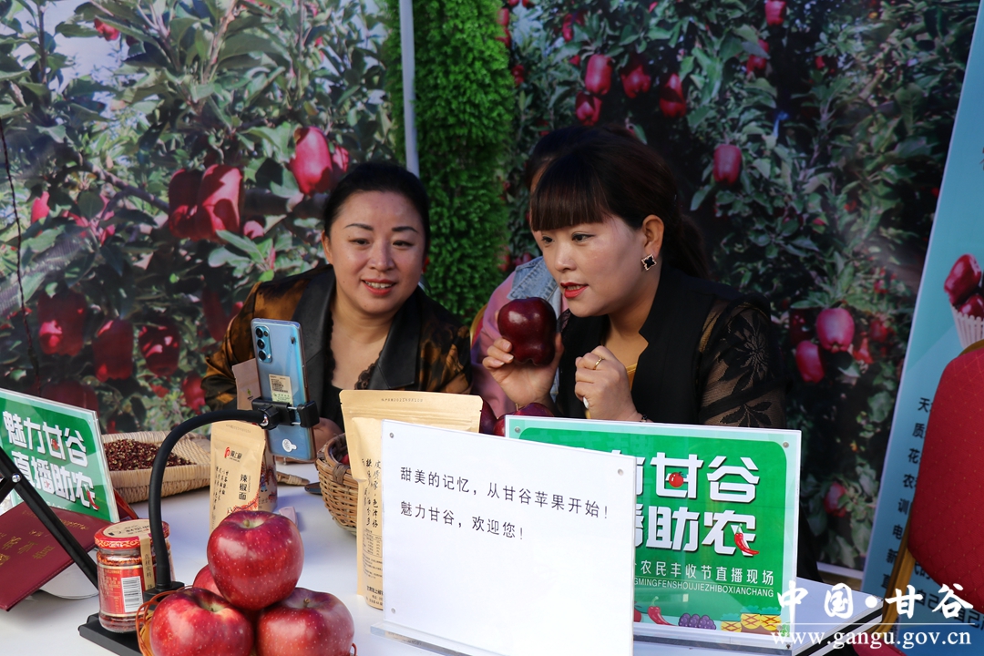 线下热闹非凡,线上圈粉无数,在直播带货区,六峰镇主播大亮和他的团队正在通过抖音、快手等平台直播卖货。“在这次农民丰收节活动中,有不少网友下单订购了甘谷的农特产品,尤其是甘谷苹果,网上订单数量达到了历史最高峰。”大亮笑着说,作为土生土长的甘谷人,能把家乡特产推介出去,感到非常高兴和自豪。