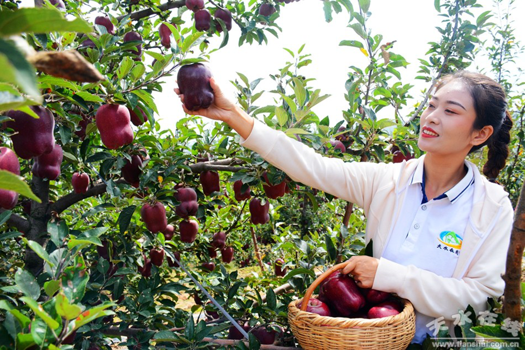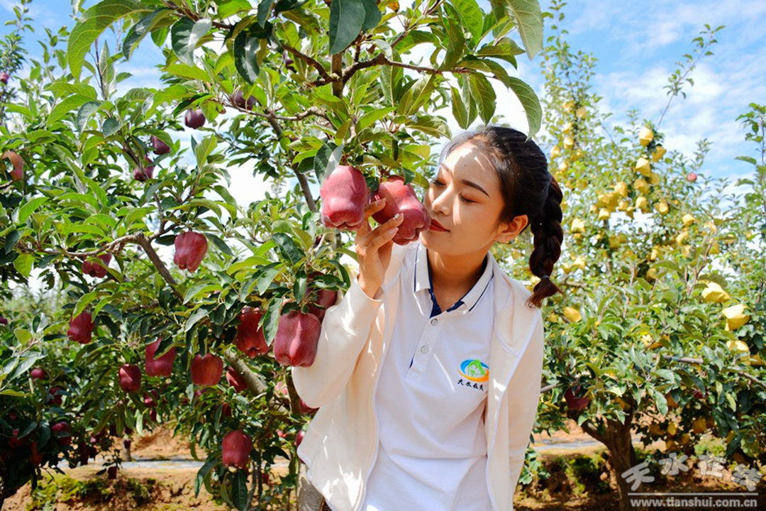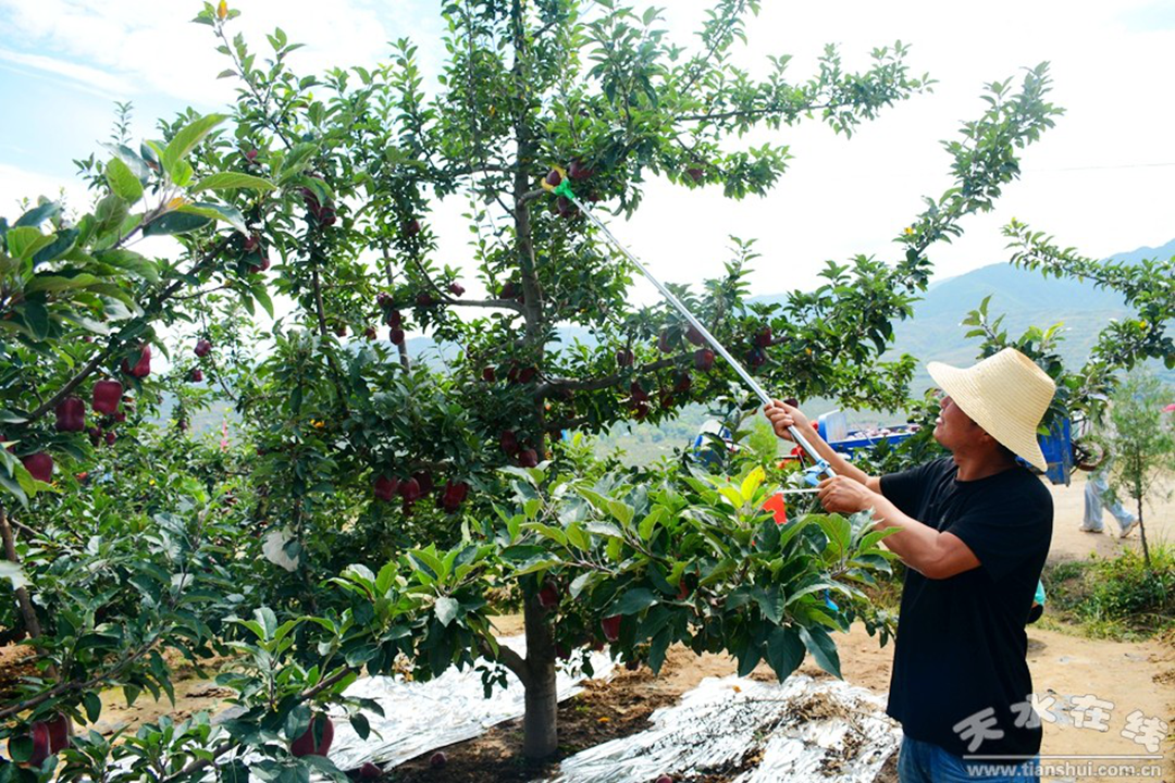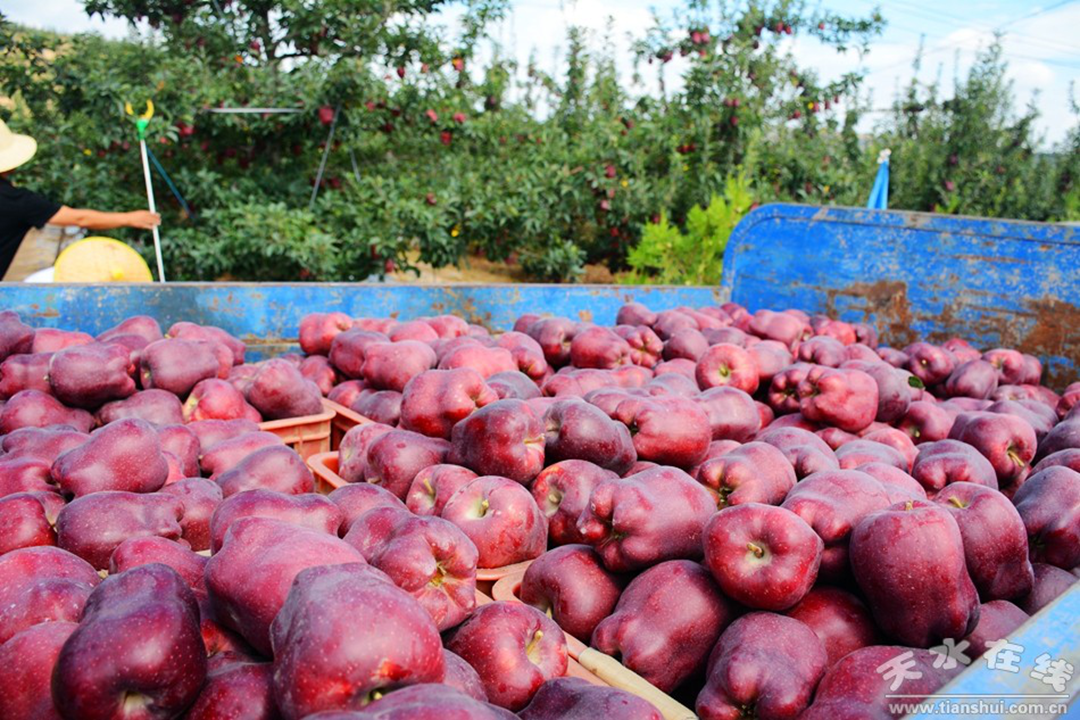近年来,甘谷县依托资源禀赋,坚持“因地制宜、适地适树、规模发展”原则,按照“品种培优、品质提升、品牌打造和标准化生产”的发展思路,大力发展以苹果为主的果品产业,果品产业得到长足发展。目前全县苹果面积36万亩,年产量62万吨以上,年产值18亿元以上。全县形成了以白家湾、磐安、大像山、新兴为主产区的优质花牛苹果基地,以安远、大石、礼辛、盘安为主产区的优质红富士基地。建有国家和省级苹果标准园15个,完成苹果商标注册54个、苹果绿色认证9个。