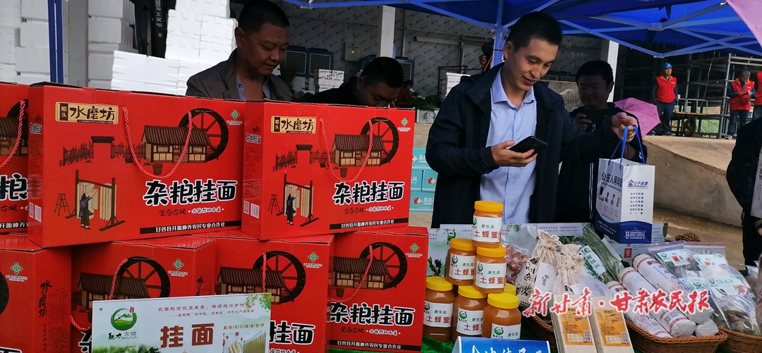 金丝菊茶、大红袍花椒、红红的花牛苹果、中药材,各类蔬菜...... 尽显丰收成果。农民群众互相交流,欢声笑语,分享丰收喜悦与迈向小康的幸福生活。