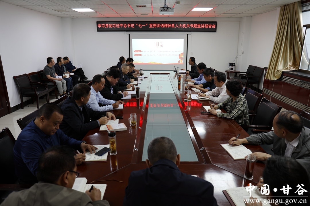 9月14日,甘谷县人大常委会机关举行学习贯彻习近平总书记“七一”重要讲话精神专题宣讲报告会。县人大常委会副主任颉明军、杨晓涛、张世诚出席报告会。县人大常委会副主任薛希武主持报告会。
