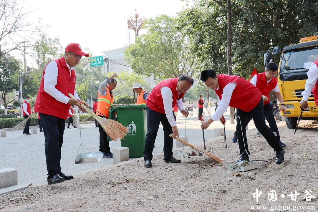 当天上午,吴健穿着志愿者红色马甲,带头拿着笤帚,认真清扫人行道和绿化带树叶、烟头以及死角盲区的枯枝败叶,用小铲子仔细铲掉人行道上的口香糖,不时与工作人员探讨交流如何落实“包街包巷包小区”责任制,常态长效推进文明县创建工作。对发现的问题当即提出整改意见,要求相关部门和沿街商铺尽快整改到位,提升区域环境面貌。
