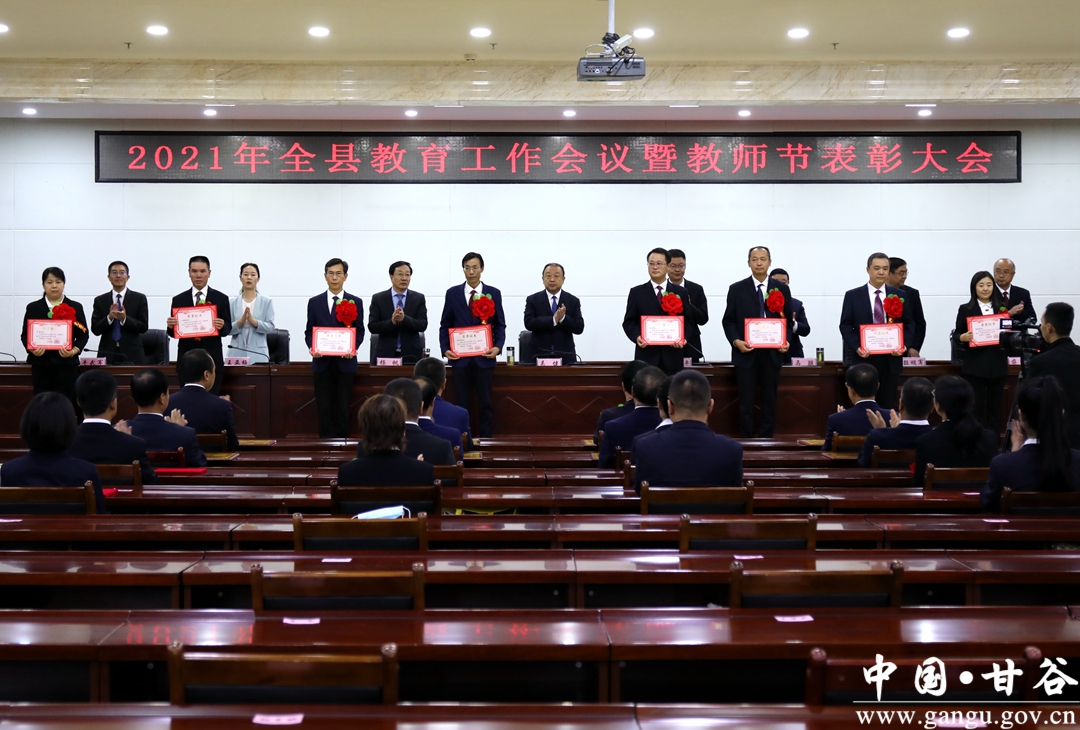 桃李满天下,春晖遍四方。近日,甘谷县庆祝第37个教师节大会召开,向全县广大教师、教育工作者以及离退休教师致以节日的祝福,会上表扬了全县教育系统表现突出的集体和个人,弘扬全社会尊师重教的良好风尚,激励全县广大教育工作者,矢志不渝坚持党的教育方针、忠诚党的教育事业,坚守初心、勇担使命,奋勇争先、不负韶华,奋力推动全县教育事业迈上新台阶、再上新水平。