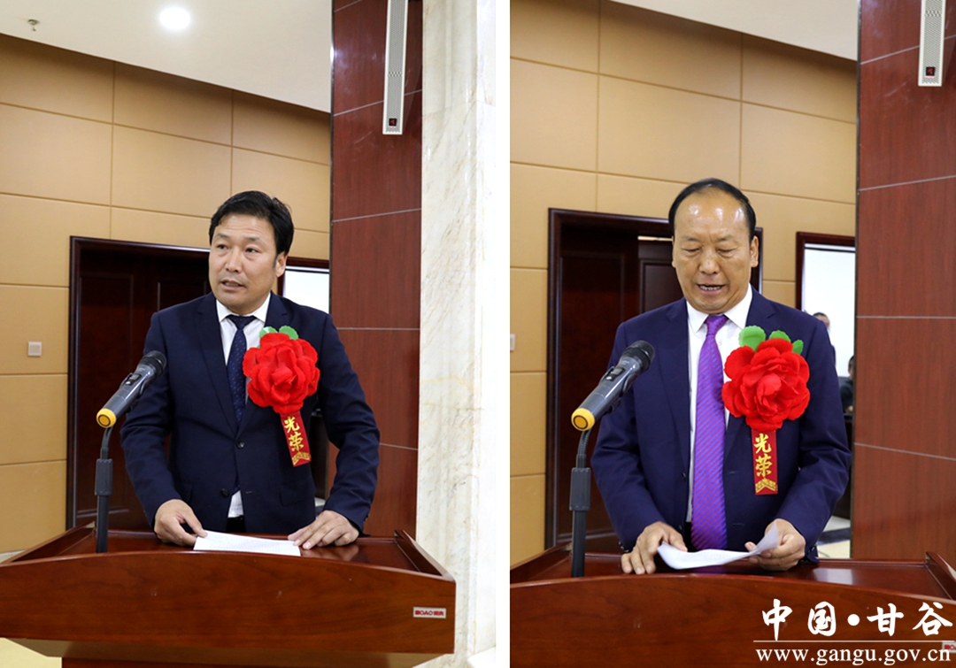 (甘谷县远志教育基金会副理事长兼秘书长张维林和捐款代表王杜林先生发言)