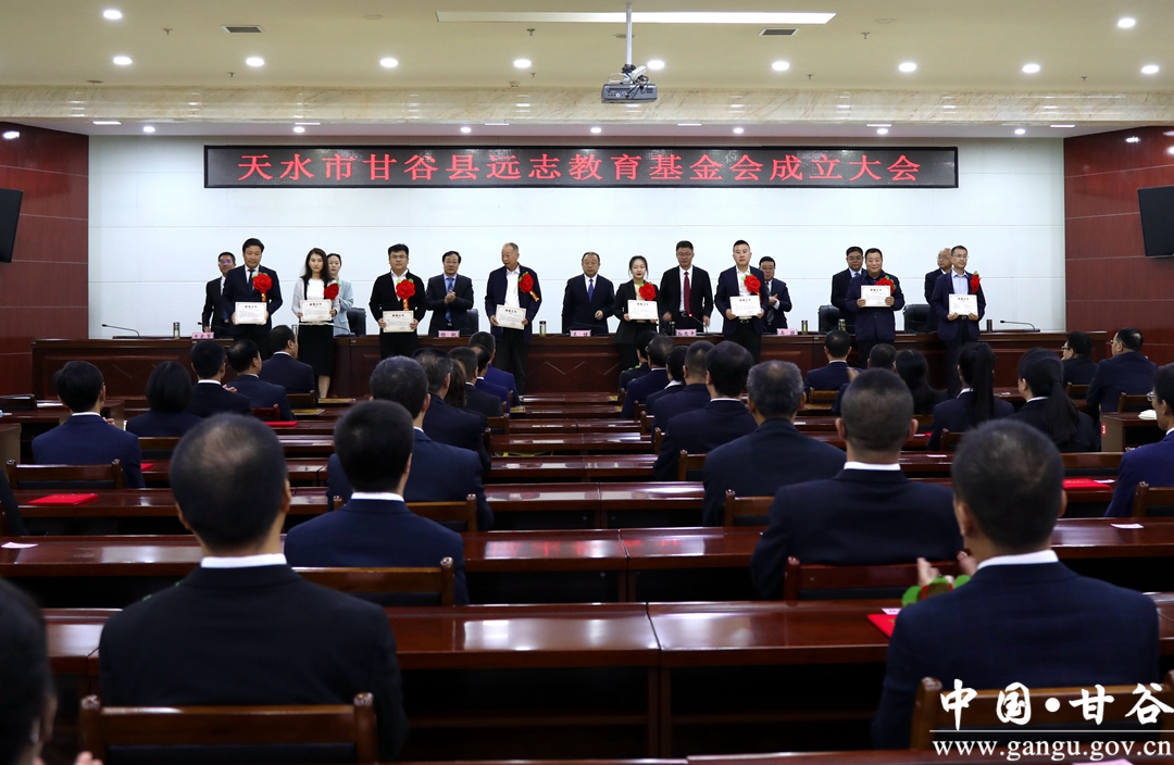 会上,副县长牛武军宣读了《甘肃省教育厅关于同意担任天水市甘谷县远志教育基金会业务主管单位的批复》《甘肃省民政厅关于登记成立天水市甘谷县远志教育基金会的批复》文件和捐款人员名单;天水市甘谷县远志教育基金会副理事长兼秘书长张维林和捐款代表新疆乌鲁木齐市锐意兴牧养殖农民专业合作社社长王杜林作了发言;会议还为捐款代表颁发了捐赠证书。