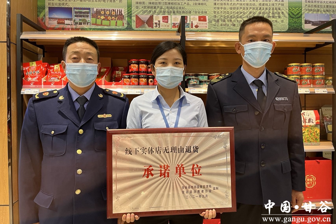 甘谷县市场监管局相关负责人向通过遴选取得“线下实体无理由退货”承诺单位的企业表示祝贺,希望获奖企业珍惜荣誉,再接再厉,坚持把诚信经营承诺、放心消费创建工作与企业文化相融合,持续推动诚信经营与营造放心消费环境良性循环,不断提升企业发展质量,积极规范经营行为,为全县优化营商环境、改善消费环境、社会经济高质量发展再创新业绩。