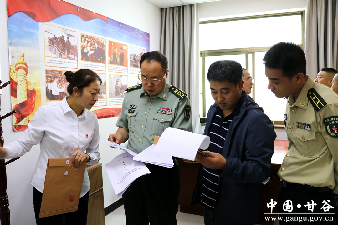 8月31日,省退役军人事务厅拥军优抚处副处长朱中龙带领督查组一行来甘谷县,就双拥模范城(县)创建和退役军人工作情况进行督查评估。市委常委、天水军分区司令员宋英武,县委常委、副县长王明,县委常委、大像山镇党委书记张俊义,县委常委、人武部部长程满平一同督查评估。
