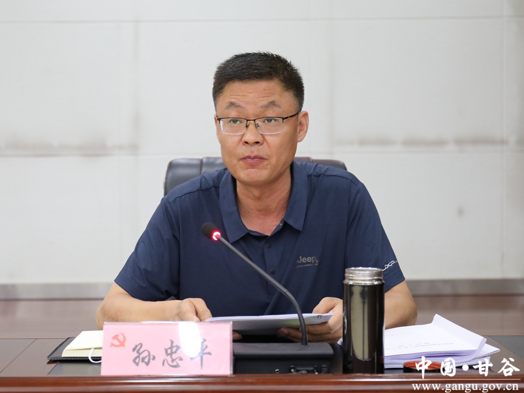 孙忠平要求,各乡镇、各部门、各单位要对标对表,紧盯年初确定的目标任务,切实增强危机感、紧迫感,准确把握甘谷阶段性发展定位,科学研判形势,清醒认识差距,在思想上绷紧、时间上抓紧,穷尽一切办法,把既定指标任务落细落小落实,不遗余力推动各项工作落地见效,确保全面完成年初确定的各项目标任务。要严格落实“四个不摘”要求,全面做好政策衔接、资金接续、力量稳定等工作,推进巩固拓展脱贫攻坚成果与乡村振兴有效衔接。要紧盯项目建设任务,主攻关键环节,解决突出问题,加快项目建设进度,积极谋划争取项目,提高招商引资实效,集中力量抓好项目实施。要坚持既定的思路不变,把发展经济的着力点放在实体经济上,结合县域产业发展实际,以传统优势产业为支撑,以战略新兴产业为重点,以绿色生态产业为先导,不断优化升级产业结构。要立足城乡一体发展,加快推进城市更新,加强土地执法监管,综合整治城乡秩序,扎实做好省级文明县创建,统筹推进城市规划、建设、管理工作。要围绕流域综合治理、水土保持、污染治理、生态修复等,重点抓好整治和监管两方面的工作。要坚持民生为大,全面落实就业创业、教育医疗、社会保障、社会救助等政策,全力以赴抓好民生实事办理,推进基本公共服务均等化,不断提高民生保障水平,全面提升群众生活品质。
