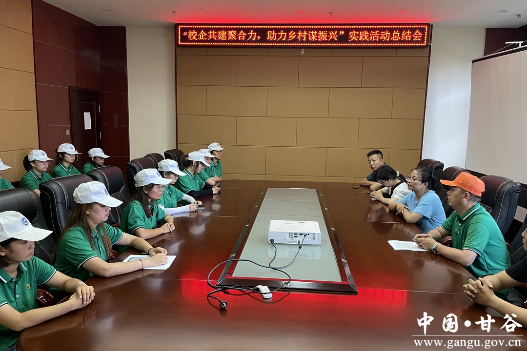 7月23日,共青团甘谷县委联合甘肃政法大学外国语学院团委“校企共建聚合力 助力乡村振兴”实践活动总结会在县政务服务中心会议室举行。团县委班子成员、甘肃政法大学外国语学院实践团队、康坪果品负责人共计30余人参加。