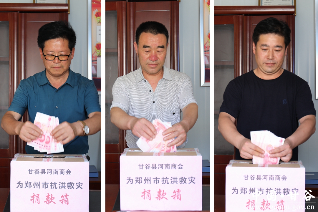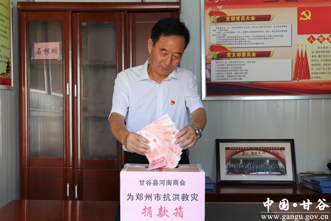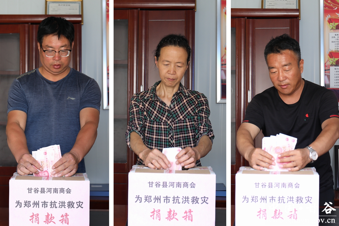 甘谷县河南商会党支部书记、会长姚振明告诉记者,得知我们的故乡遭受百年不遇的洪水灾害,家乡亲人们生命和财产受到了损失,我们商会迅速组织起来召开了会长会议,向各位豫商企业家们发出捐款支持老家抗灾倡议,各位老乡纷纷表示捐款支持,在很短的时间里我们商会捐款一万多元支持家乡灾后重建,使我们家乡的亲人们尽早恢复平安、幸福的工作生活。