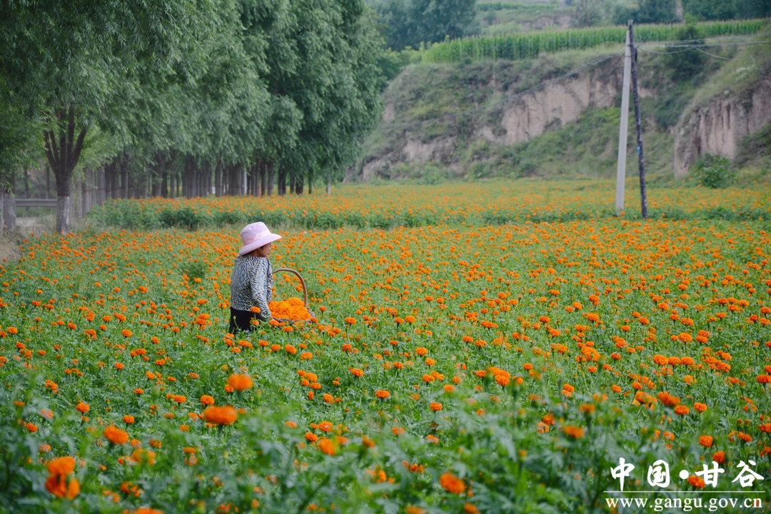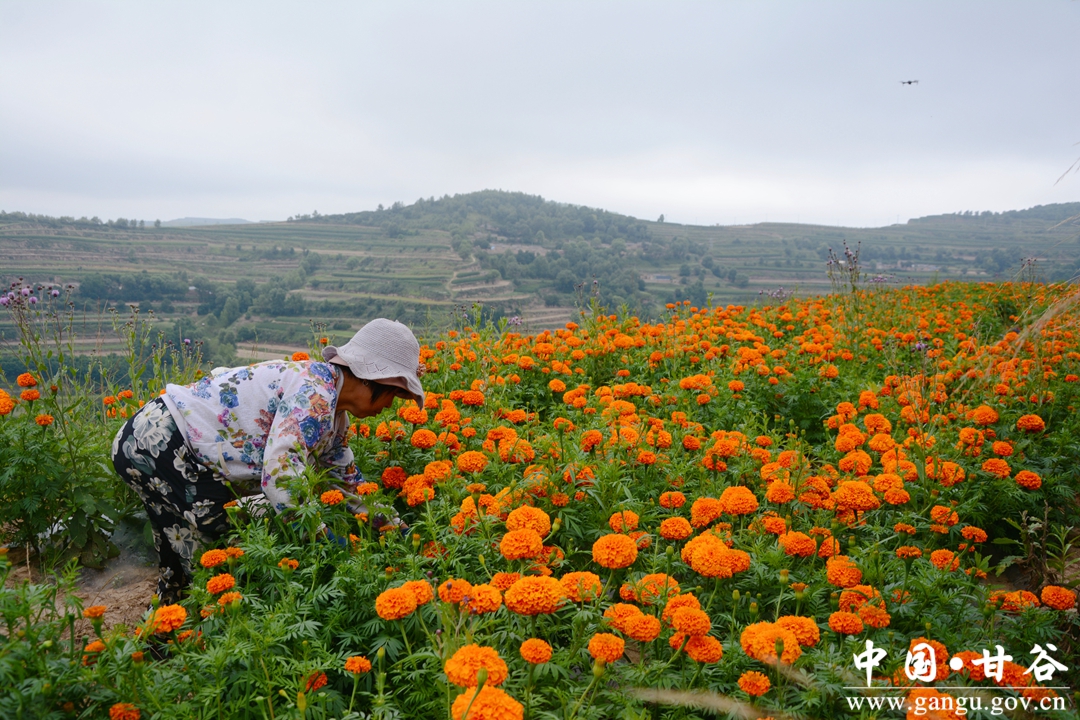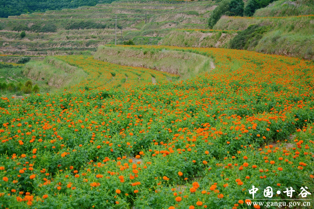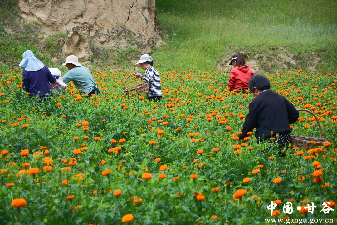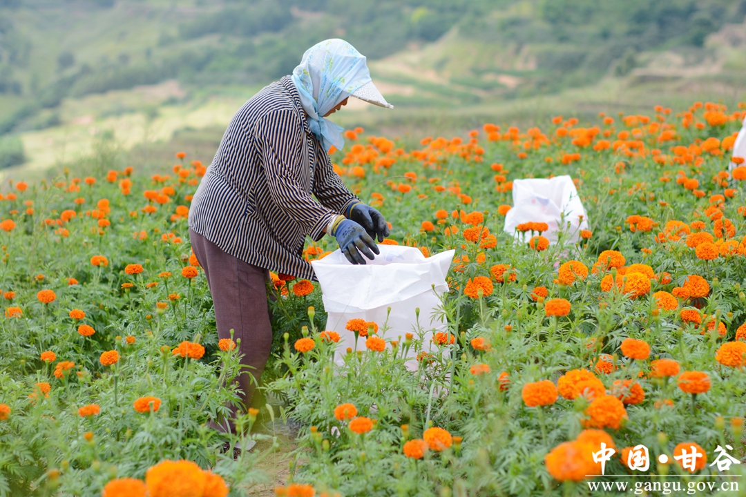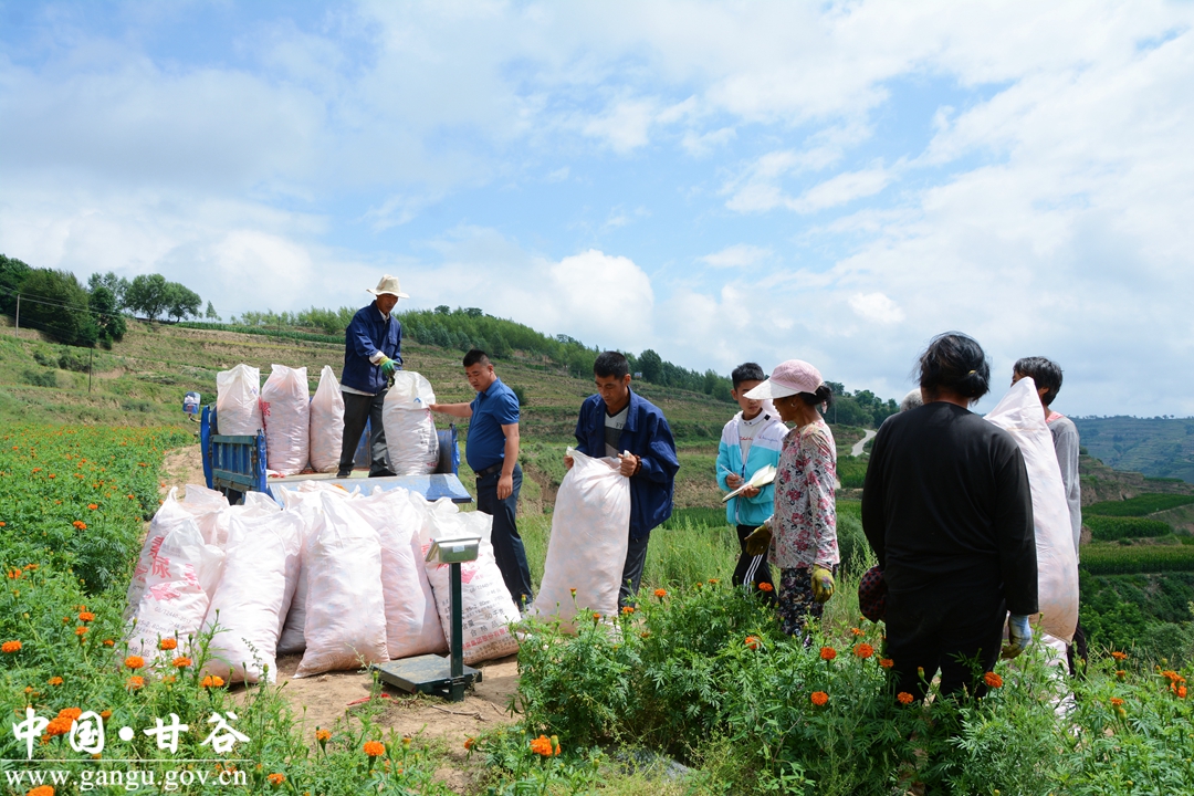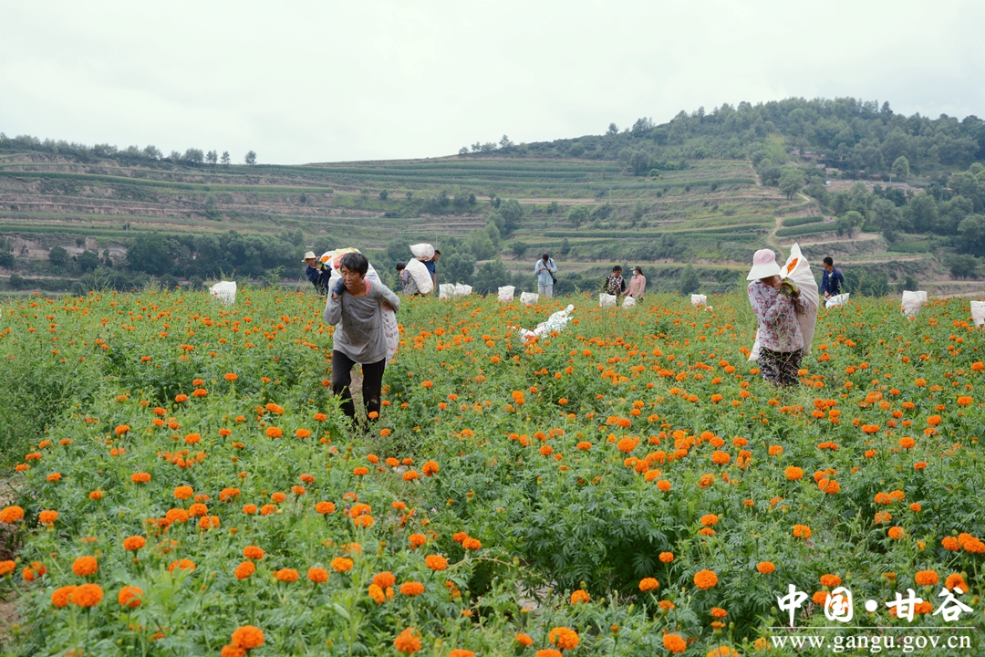 盛夏时节,甘谷县大庄镇千亩菊花基地里的万寿菊进入了采摘季,田野里一片繁忙的景象。当地通过大力发展菊花产业,不仅为农户增加了收入,也为深化和实现全面乡村振兴注入了活力。