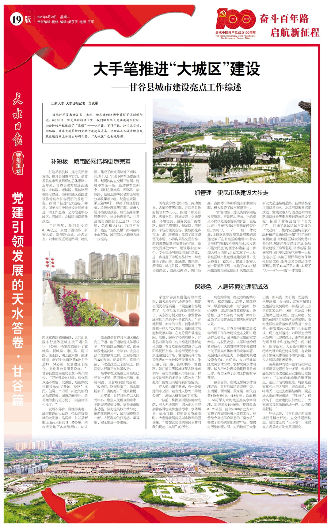 近年来,甘谷县坚持以人民为中心,聚焦人民群众的需求,不断完善基础设施,提升城市服务功能,努力提高城市精细化、规范化管理水平,城市面貌焕然一新,人民群众的获得感、幸福感、安全感进一步增强。