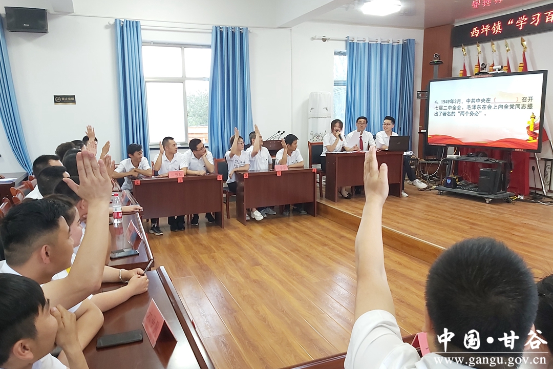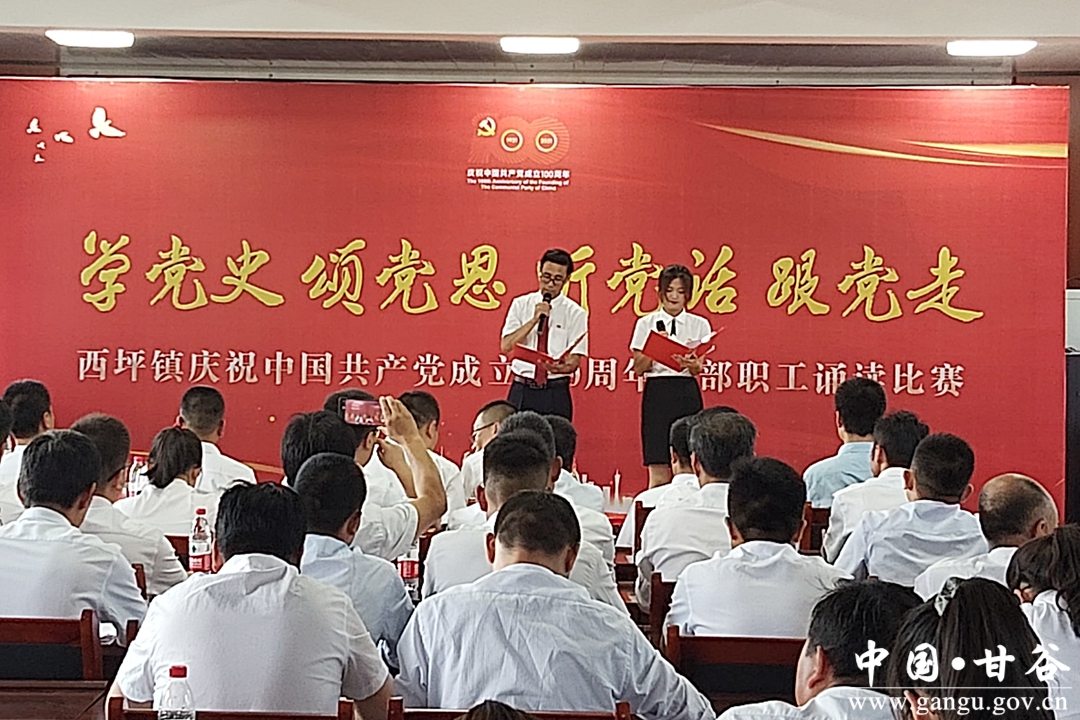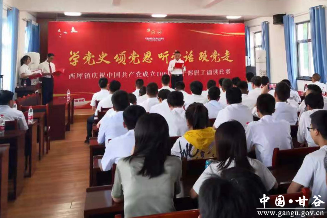为庆祝中国共产党成立100周年,扎实推进党史学习教育,检验学习成效,丰富教育形式,6月30日,甘谷县西坪镇举办了“学党史、颂党恩、听党话、跟党走”红色经典诵读比赛和“学习百年党史、汲取奋进力量”党史知识竞赛,引导全镇干部职工重温革命历史、传承红色基因,知史鉴今、砥砺初心,以昂扬的姿态奋力开启新征程。