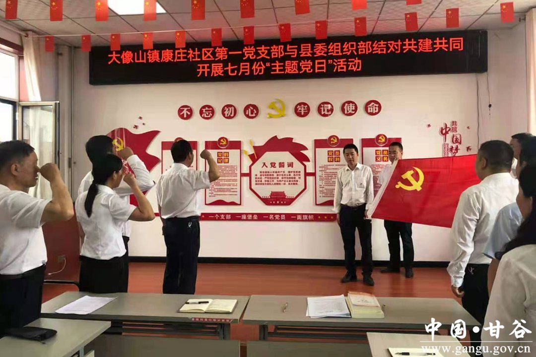 7月2日,甘谷县委组织部党支部组织党员、干部开展了7月份“主题党日”活动。活动中,党员、干部集体学习了习近平总书记在“七一勋章”颁授仪式上的重要讲话和在庆祝中国共产党成立100周年大会上的重要讲话,支部书记围绕《学习百年党史 坚定理想信念》为主题,结合个人学习体会从为什么学习党史、怎么样学好党史、从党史中应该学到什么等三个方面做了党史学习教育专题宣讲。同时,联合康庄社区共同开展了重温入党誓词、讲授专题党课、走访慰问等活动。