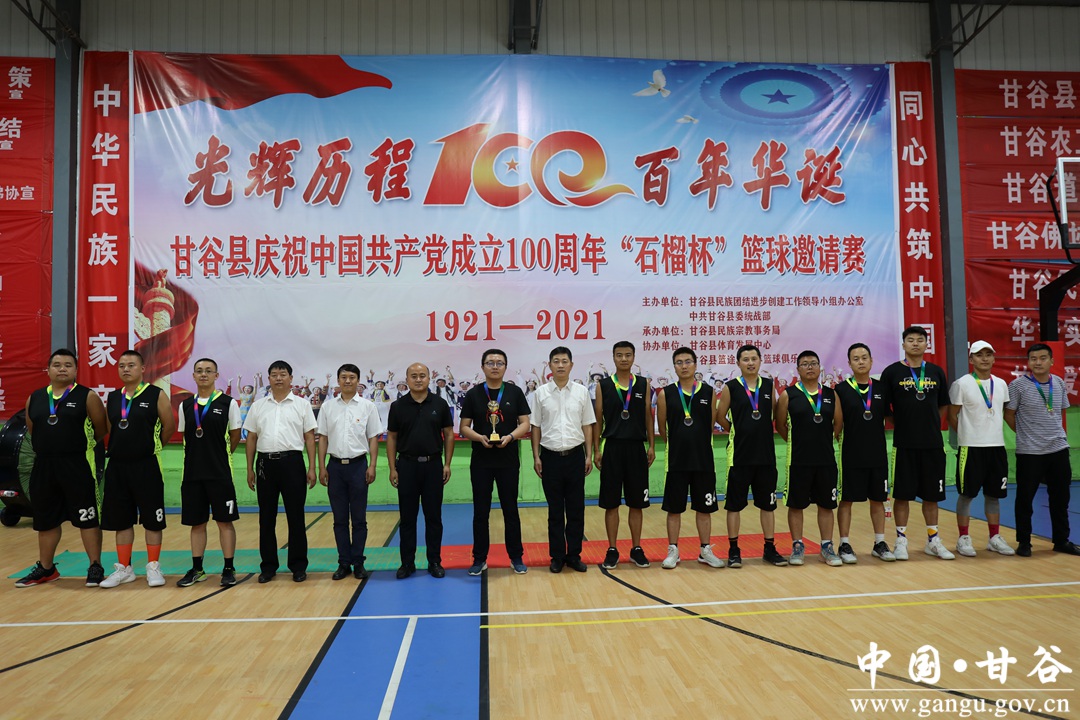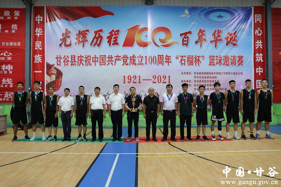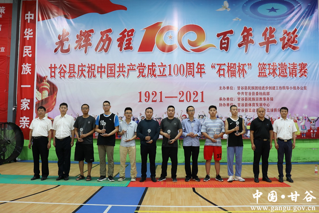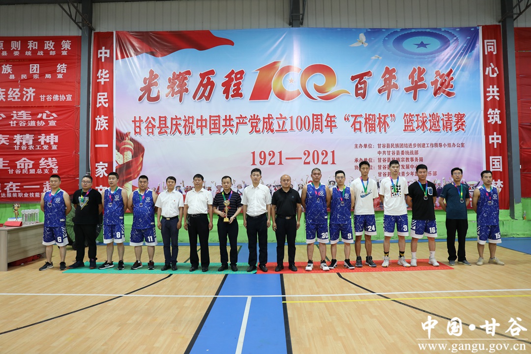6月30日,“石榴花开心向党,中华民族一家亲”甘谷县庆祝中国共产党成立100周年“石榴杯”篮球邀请赛在篮途青少年篮球俱乐部圆满落下帷幕。县委统战部、县民宗局、县体育中心负责人及赞助商代表、各参赛球队、工作人员参加闭幕式。