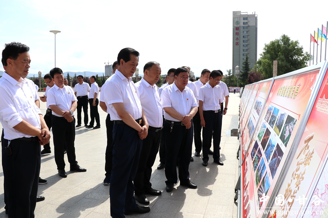 7月1日,市人大常委会副主任、县委书记申君明,县委副书记、县长吴健,县政协主席马骥等县四大组织领导在冀城广场参观庆祝中国共产党成立100周年成就展。