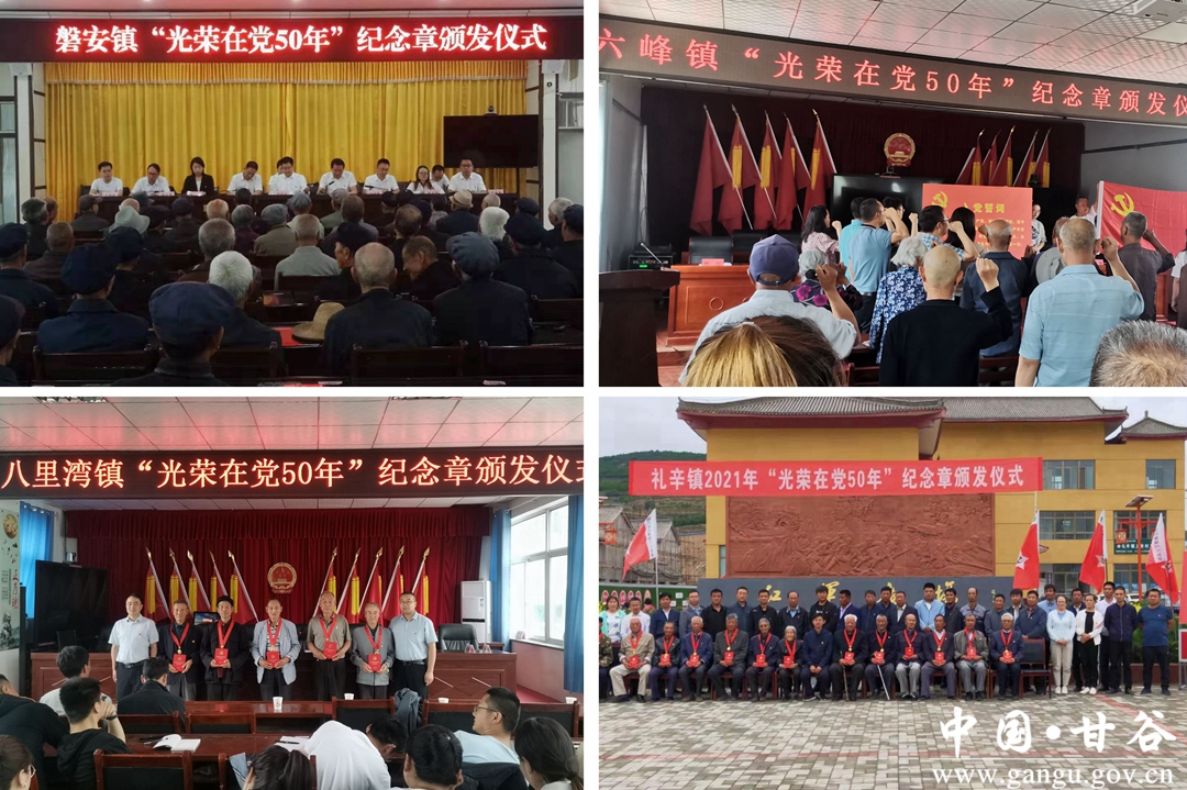 光荣在党之光,照亮前行之路。“我非常激动,感谢党、永远忘不了党,回去以后给年轻的党员宣传,让他们好好的干,把工作干好,给群众多办实事、办好事。”6月15日,今年87岁高龄的老党员魏俊林接过“光荣在党50年”纪念章时感慨地说。按照党中央统一部署,近日,甘谷县全面启动“光荣在党50年”纪念章颁发工作,全县1233名党龄达到50年、一贯表现良好的老党员陆续迎来高光时刻。一百年征程浩荡,五十载红心依旧,一枚小小的纪念章,承载的是光荣与梦想、责任与激励,佩戴上纪念章,老党员们激动万分、满怀自豪,党员的荣誉感、归属感、使命感在心中份量更重了,老党员们表示深切感受到了以习近平同志为核心的党中央的关怀和温暖,要始终牢记党的宗旨,听党话、感党恩、跟党走,力所能及地发挥老党员的余热,用实际行动践行共产党员的初心使命。老党员老前辈们的奋斗历程和光辉事迹,深深触动着青年党员的心,他们纷纷表示,深受感动、备受鼓舞,新一代的共产党员,有责任从老党员老前辈手中接过交接棒,传承和弘扬政治本色、优良作风,初心不改,使命不移,为实现中华民族伟大复兴的中国梦而不懈奋斗。