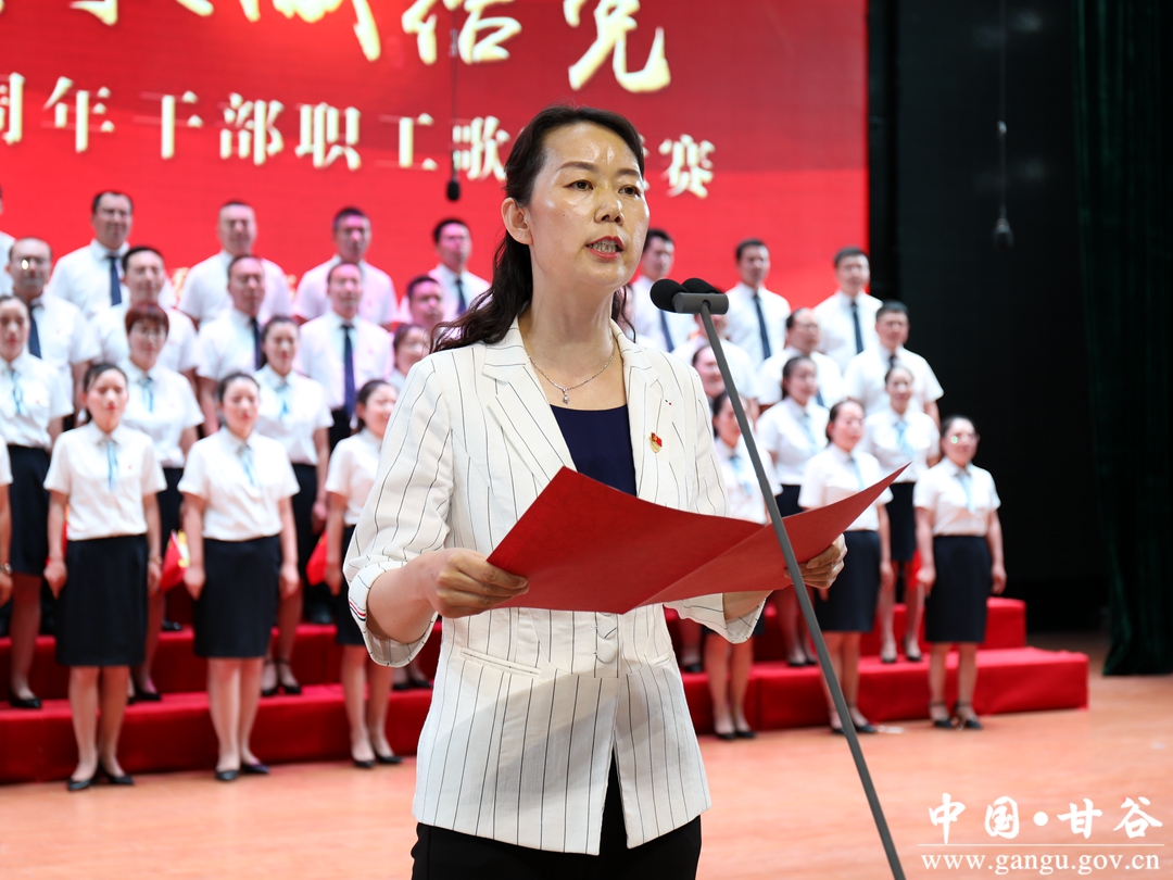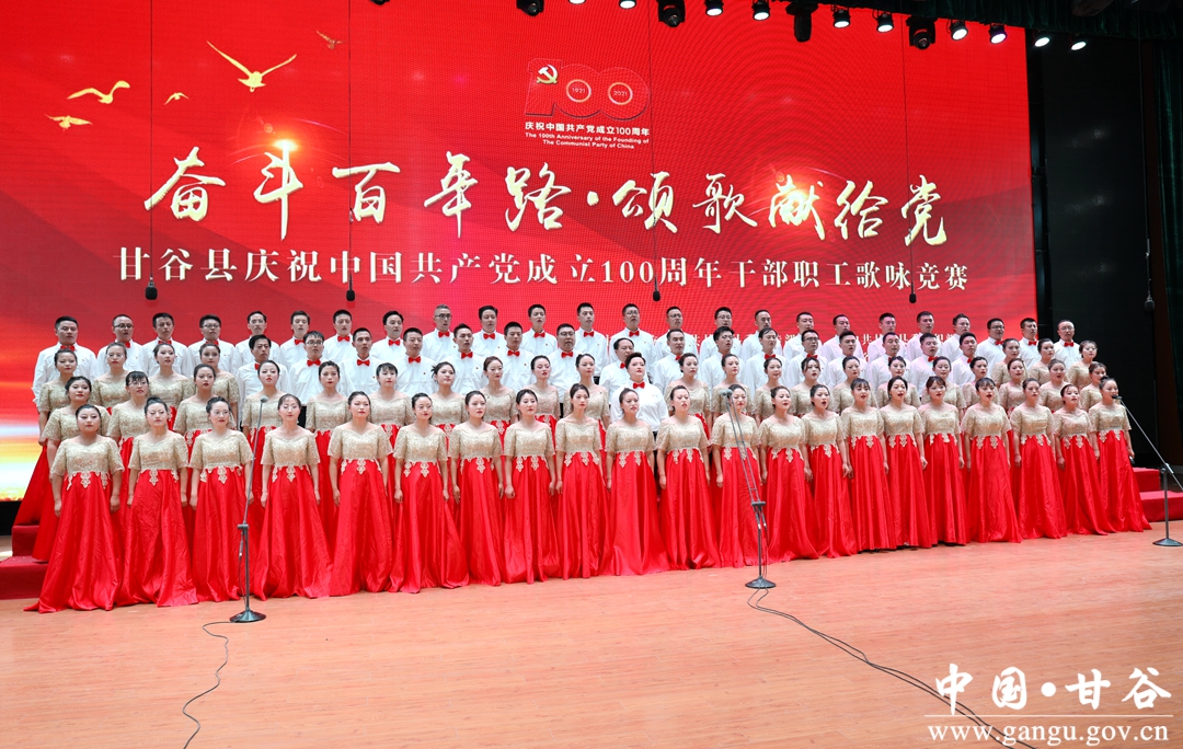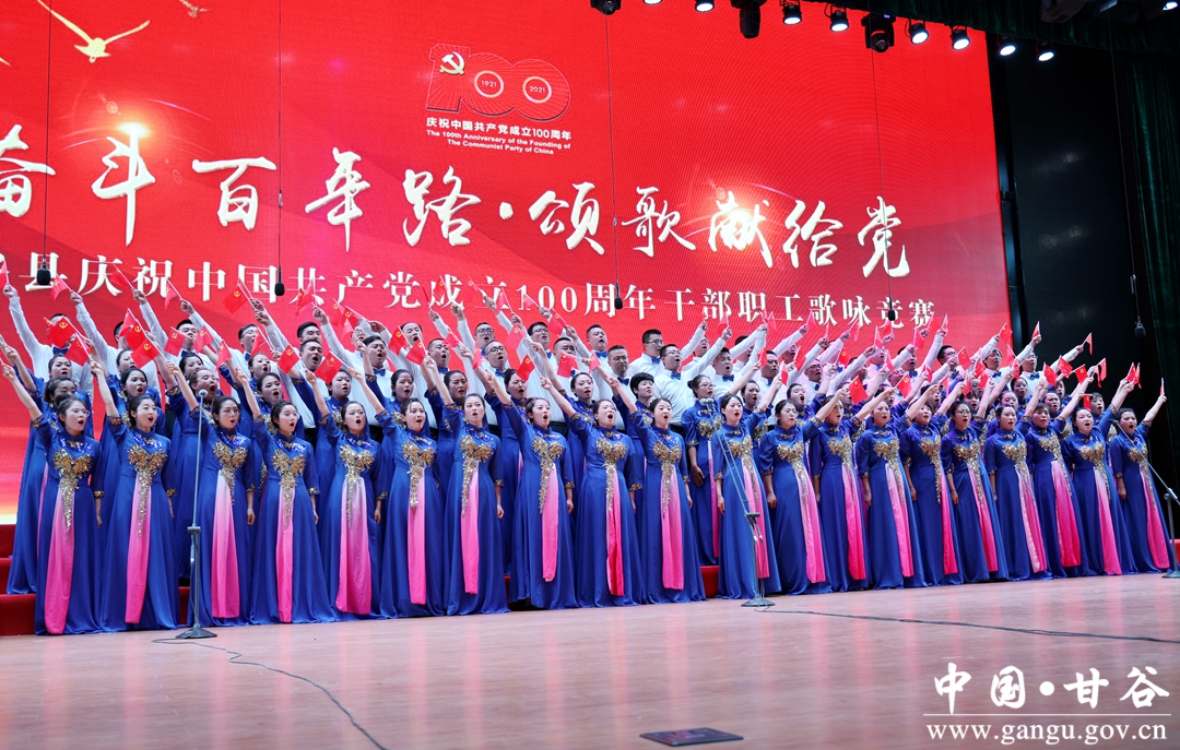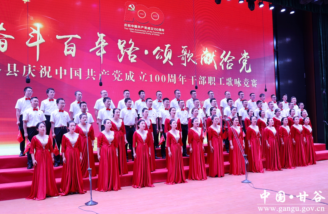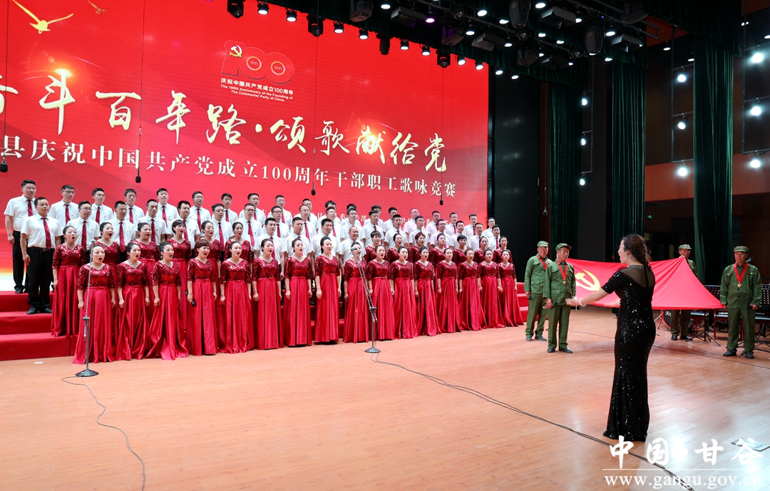 百年恰风华,世纪正青春,传承红色基因,赓续红色血脉;新时代,甘谷大地爱党爱国的主旋律薪火相传,64万甘谷儿女奋斗圆梦的精神生生不息。比赛现场,15支参赛队伍依次登台演唱,深情唱响《唱支山歌给党听》《我们走在大路上》《春天的故事》《在灿烂阳光下》等一首首脍炙人口、耳熟能详的经典歌曲,唱出了百年大党的风华正茂、新时代中国的朝气蓬勃,全面彰显了全县党员干部对党的无限忠诚、对祖国的无比热爱。