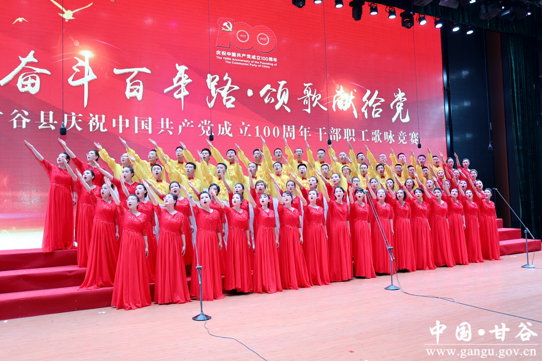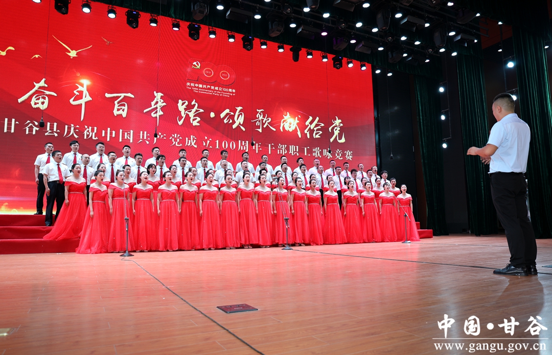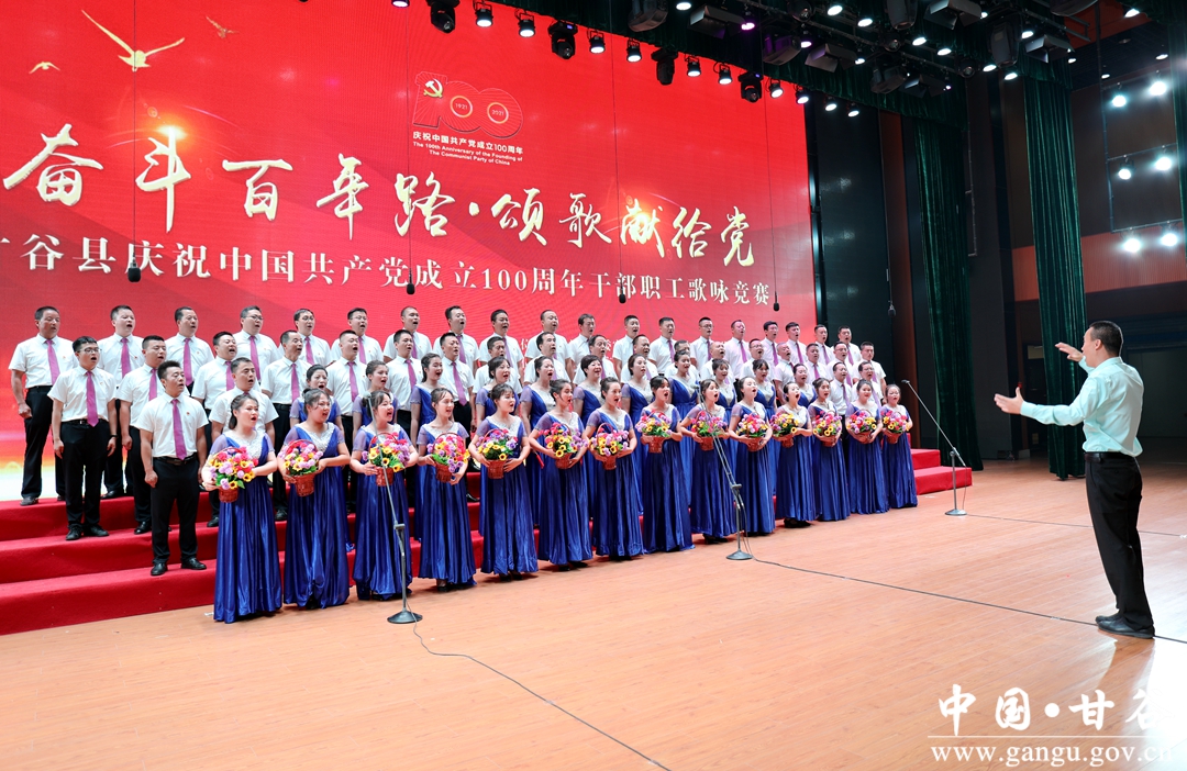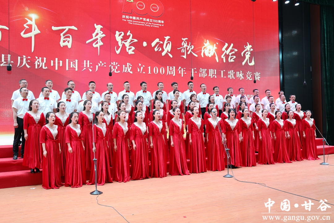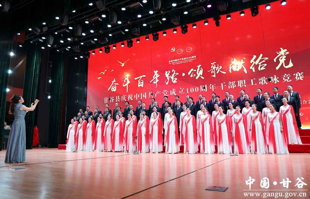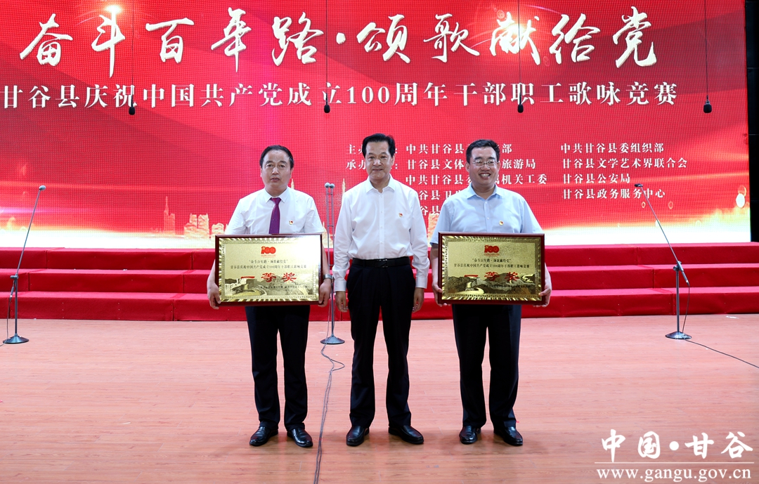 6月24日晚,“奋斗百年路·颂歌献给党”甘谷县庆祝中国共产党成立100周年县直部门干部职工歌咏竞赛在大剧院举行,通过歌声抒发对党和祖国最诚挚的祝愿,祝愿伟大的中国共产党永远朝气蓬勃、伟大的祖国更加繁荣昌盛。市人大常委会副主任、县委书记申君明,县委副书记、县长吴健,县政协主席马骥等四大组织领导观看演出并为获奖队伍颁奖。
