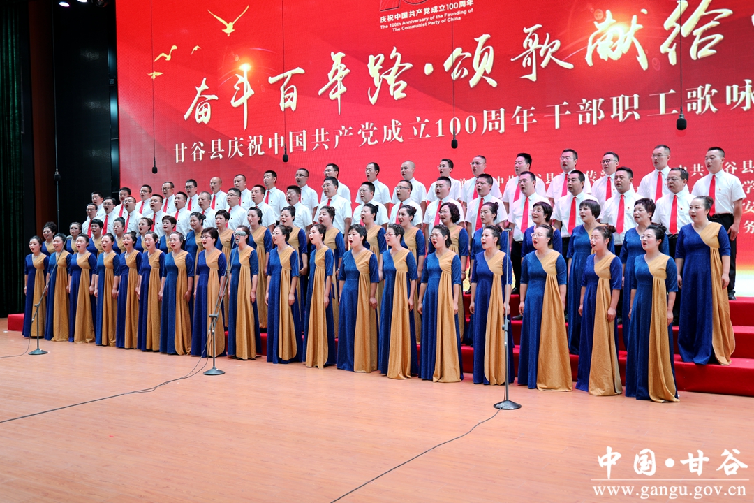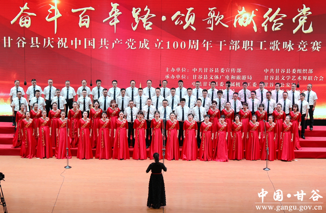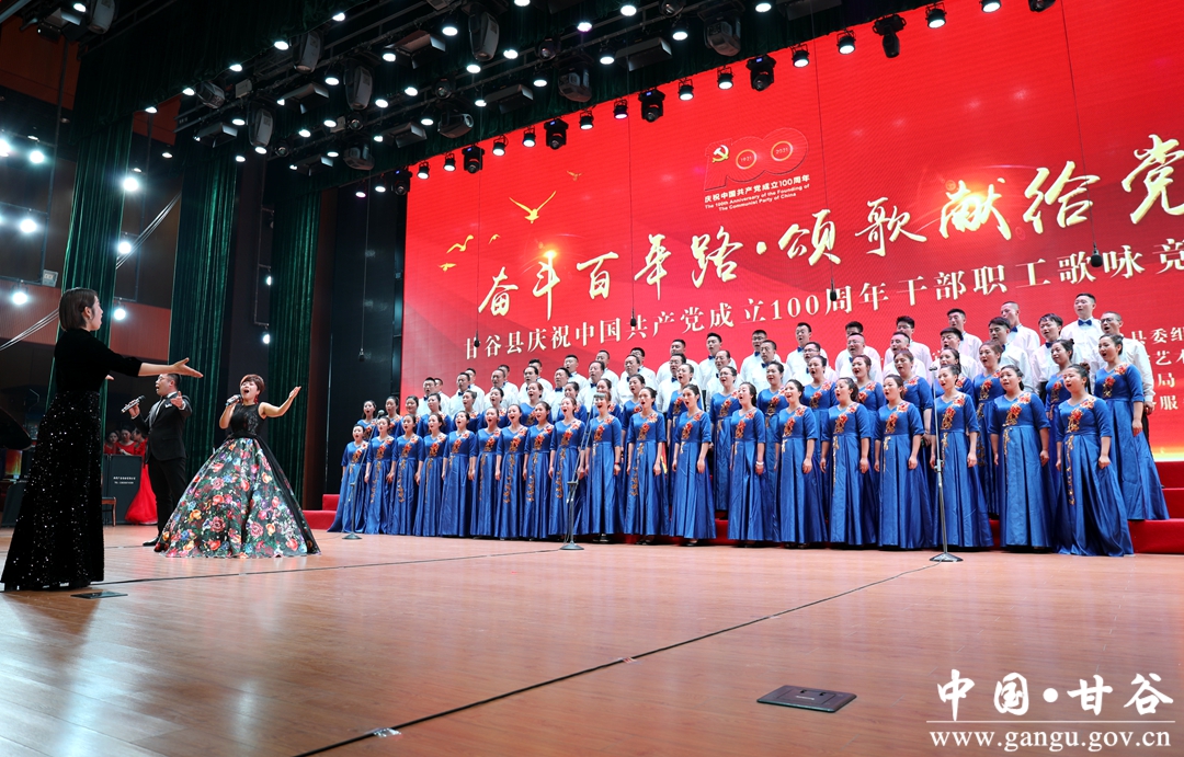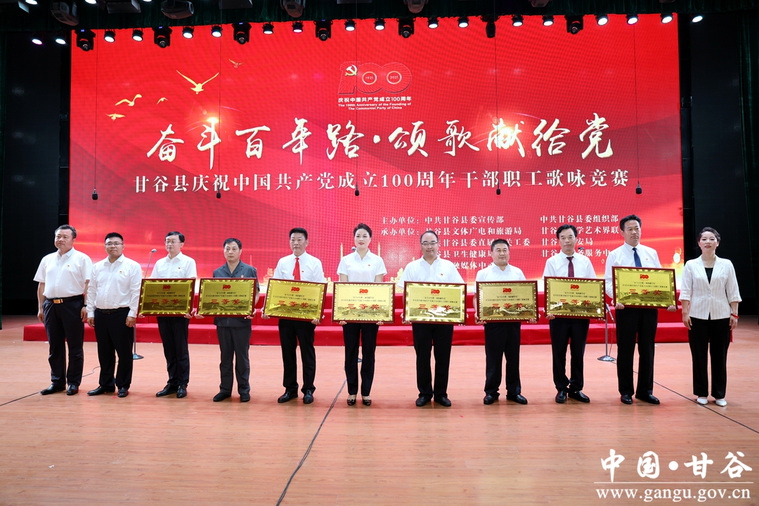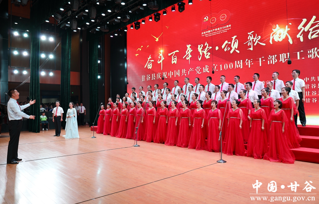 6月24日晚,“奋斗百年路·颂歌献给党”甘谷县庆祝中国共产党成立100周年县直部门干部职工歌咏竞赛在大剧院举行,通过歌声抒发对党和祖国最诚挚的祝愿,祝愿伟大的中国共产党永远朝气蓬勃、伟大的祖国更加繁荣昌盛。市人大常委会副主任、县委书记申君明,县委副书记、县长吴健,县政协主席马骥等四大组织领导观看演出并为获奖队伍颁奖。