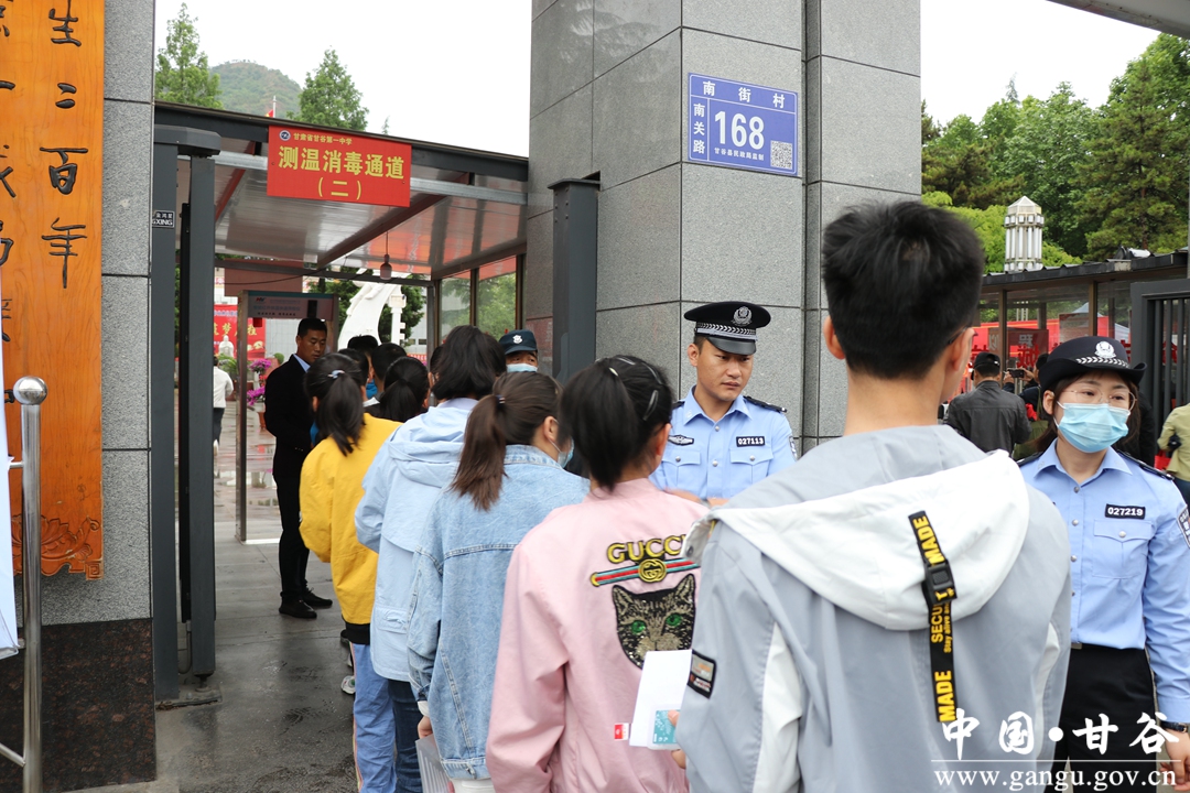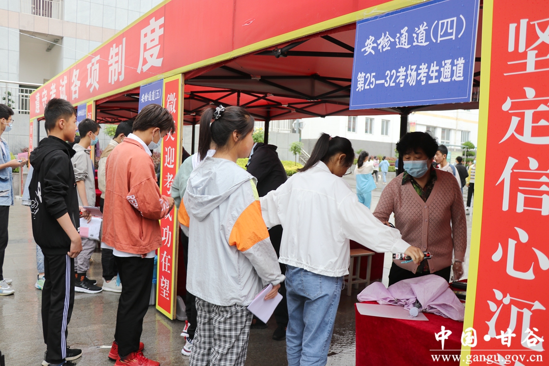 上午8时许,距离开考还有一个小时,在甘谷一中考点门口,各项工作井然有序。交警设置好道路临时管制的提醒标志,引导来往车辆通行;考点工作人员检查好准备措施,整装就位;志愿者摆好摊位,放好水和雨伞等物资,随时准备为考生服务。