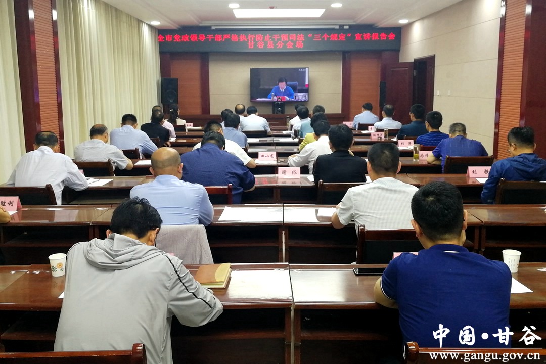 王锐强调,全市各级领导干部要坚持以上率下,带头尊法学法守法用法,严守“不违规过问案件、不违规干预司法、不违规接触交往”的政治纪律和政治规矩,自觉做遵守“三个规定”的表率、做支持司法机关依法公正行使职权的表率。要以此次宣讲为契机,多渠道、深层次、全方位开展宣传活动,在全市迅速兴起学习宣传贯彻“三个规定”的热潮,进一步树立依法依规办事、保障公平正义、纯洁司法环境的鲜明导向。政法机关要持续加强对“三个规定”执行落实情况的监督检查,畅通举报渠道,注重监督实效,助力政法机关和政法干警严格执法、公正司法,不断提升执法司法公信力,推动全市政法队伍教育整顿走深走实,为天水高质量发展提供坚强法治保障。