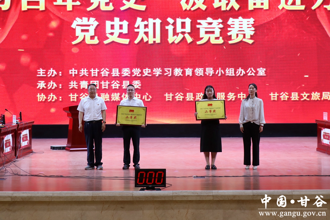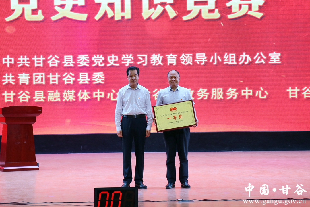 在中国共产党成立100周年之际,6月10日,甘谷县举行“学习百年党史 汲取奋进力量”党史知识竞赛。市人大常委会副主任、县委书记申君明,县委常委、宣传部部长王亚梅,县人大常委会副主任王新民,县政协副主席田小龙出席活动并为获奖参赛队颁奖。