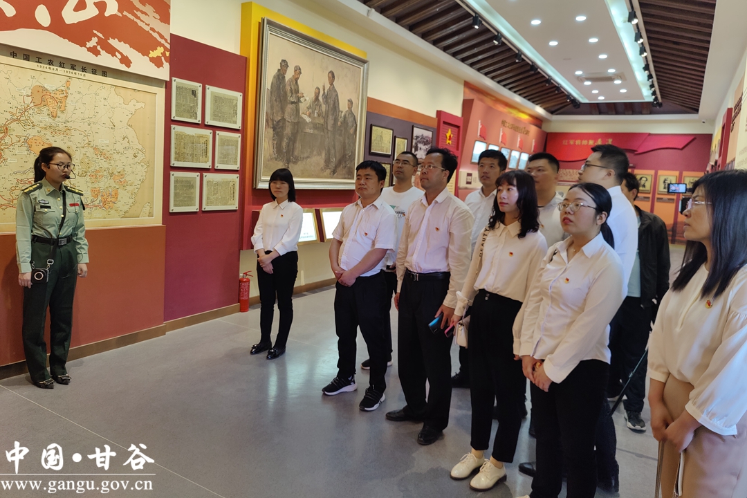 长征是宣言书、是宣传队、是播种机。为深入学习贯彻习近平总书记关于党史学习教育的重要讲话和指示精神,全面落实“学党史、悟思想、办实事、开新局”部署要求,切实做到学史明理、学史增信、学史崇德、学史力行,从党的百年伟大奋斗历程中汲取智慧和力量,大力传承弘扬长征精神,赓续红色血脉基因,激励党员干部坚定信念、一心为民、艰苦奋斗、实干担当。6月5日,甘谷县政府办党支部组织党员干部赴通渭县榜罗镇会议纪念馆和我县礼辛镇爱国主义教育基地,开展迎“七一”红色教育基地参观学习活动,回顾党的不凡历程、重温党的辉煌历史。