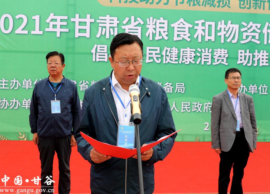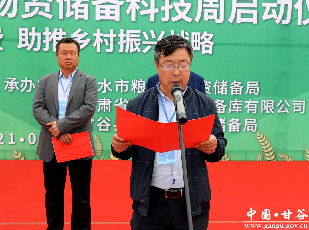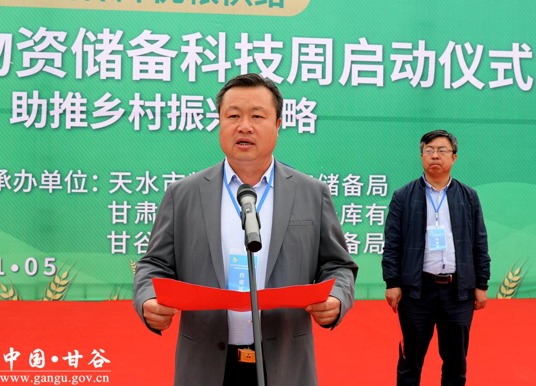 5月25日,甘肃省2021年粮食和物资储备科技活动周启动仪式在甘谷县冀城广场举行。甘肃省粮食和物资储备局白银直属库党委书记、董事长、总经理周义昌宣布活动周启动,甘肃省粮食和物资储备局白银直属库副总经理张元讲话;县委常委、副县长王明致辞。启动仪式由县人大常委会副主任陈旭主持。
