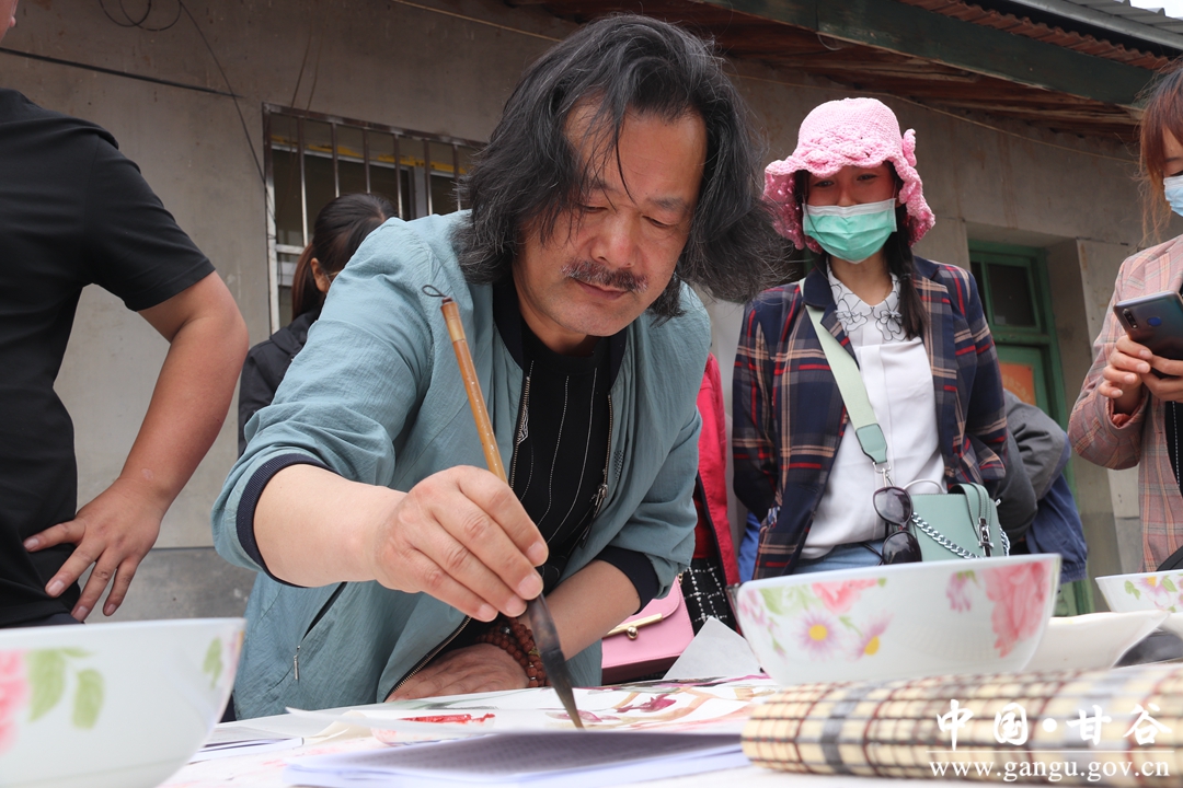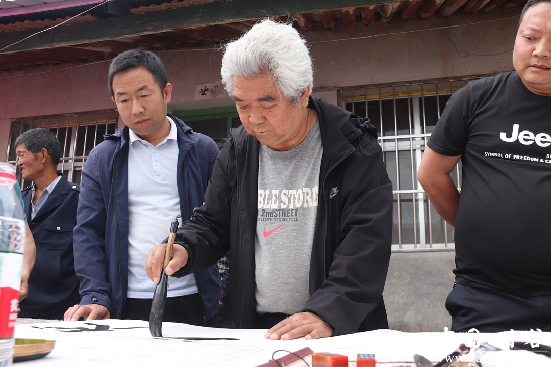 慰问团一行来到黄家窑村,为学生送去了书包、文具盒、作业本铅笔等学习用品,希望他们能够好好学习,天天向上,还为教学点每位老师每人准备了一套运动服,感谢他们在大山深处的无私奉献和默默付出。会员们还挥毫泼墨,为当地老百姓送去了字画。