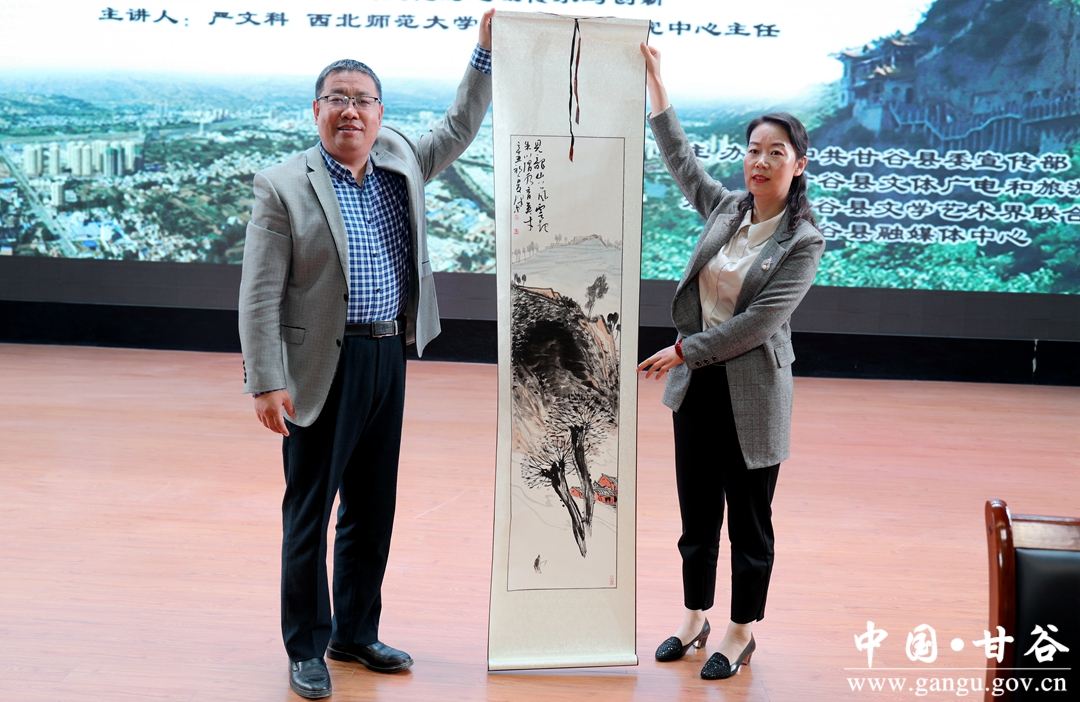 5月20日,甘谷县《冀城大讲堂》第四讲开讲,特邀家乡知名人士、西北师范大学中国品格研究中心主任,西北师范大学北京校友联谊会常务副会长兼秘书长,文科创新(北京)教育科技有限公司创始人严文科,就传统文化语境下的甘谷人文作专题辅导讲座。