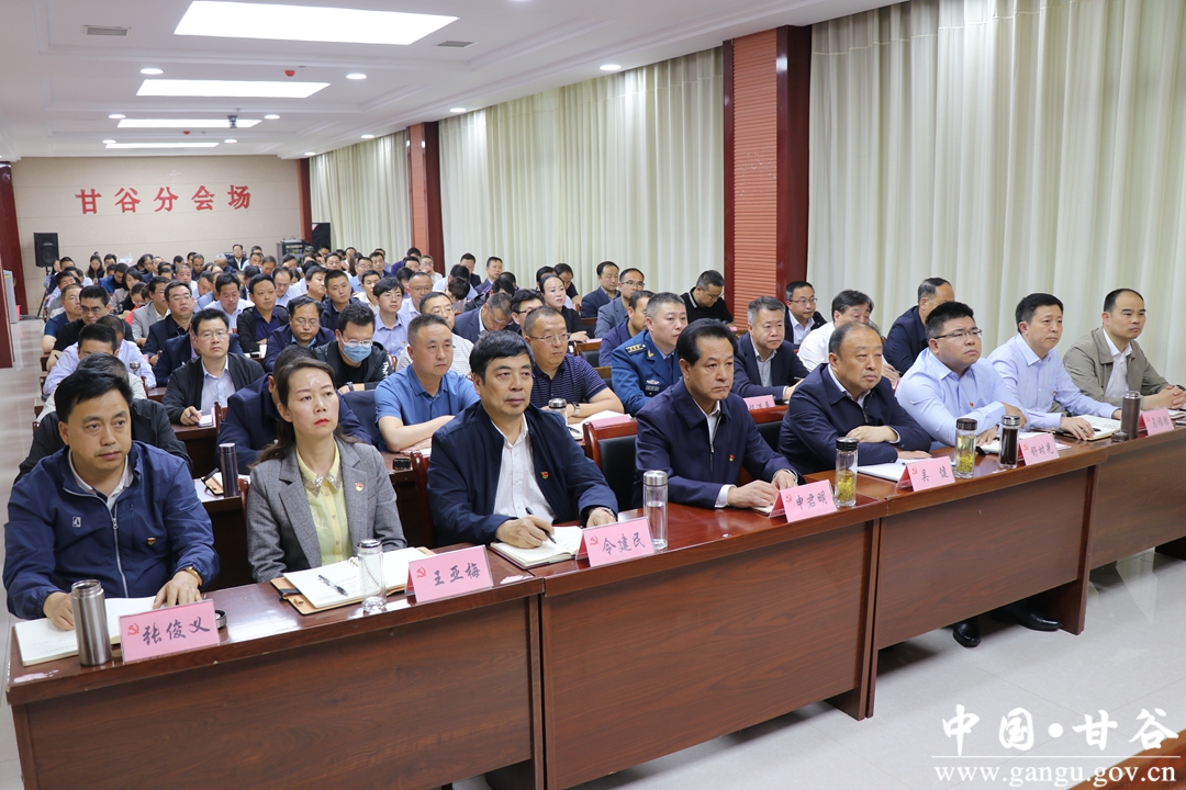 市人大常委会副主任、县委书记申君明,县委副书记、县长吴健,一级调研员令建民,县委副书记舒时光,县委常委、宣传部部长王亚梅,县委常委、政法委书记马福胜,县委常委、大像山镇党委书记张俊义,县委常委、纪委书记、监委主任李万举,县委常委、组织部部长李斌斌,县委常委、县人武部部长程满平,县委常委、统战部部长王见学,县委常委、副县长张秉春、蔺森山在甘谷分会场收听收看会议。